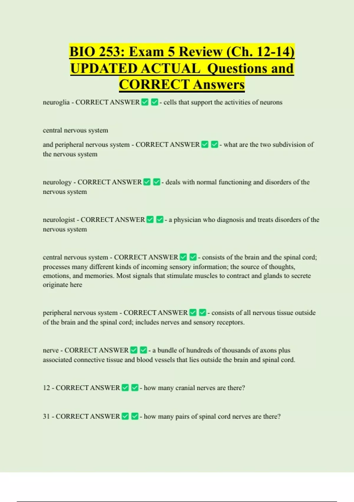 UPDATED ACTUAL Questions and