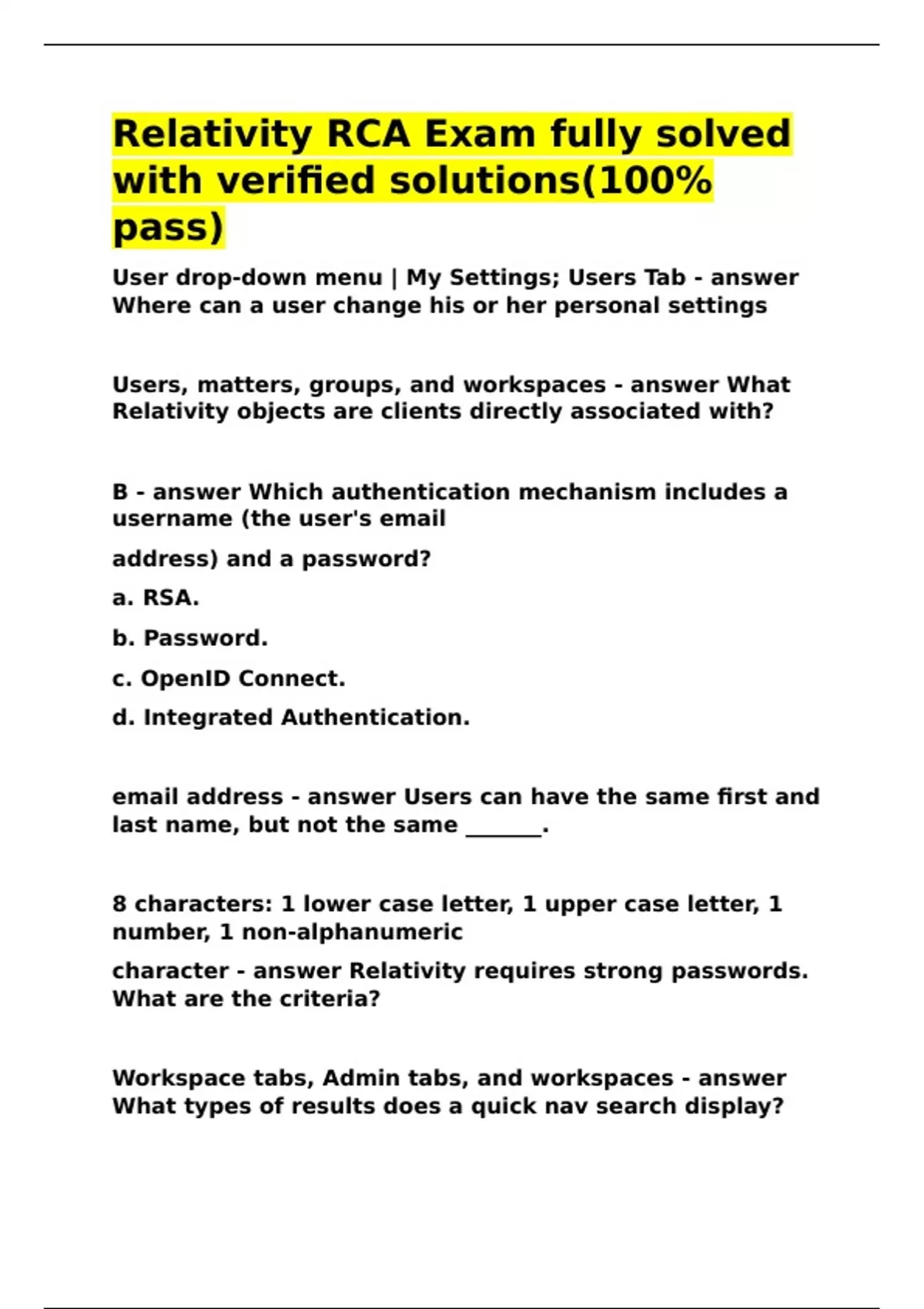 Relativity RCA Exam fully solved with verified solutions(100- pass)