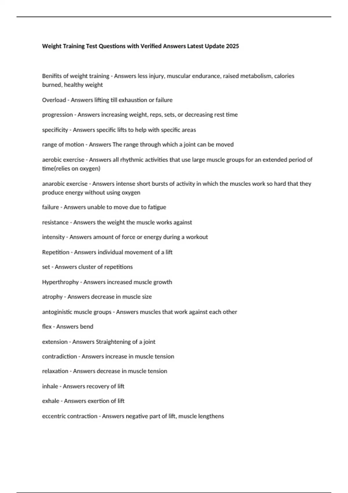 Benifits of weight training - Answers less injury, muscular endurance, raised metabolism, calories