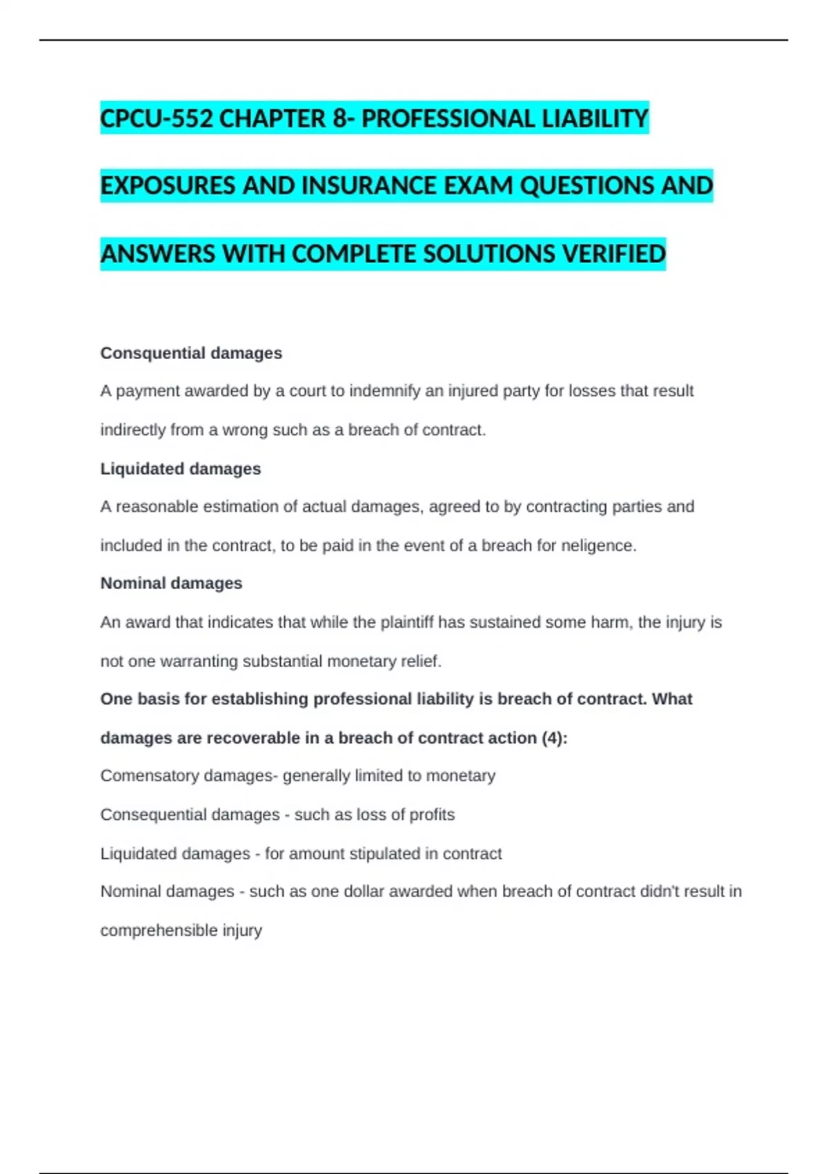 EXPOSURES AND INSURANCE EXAM QUESTIONS AND