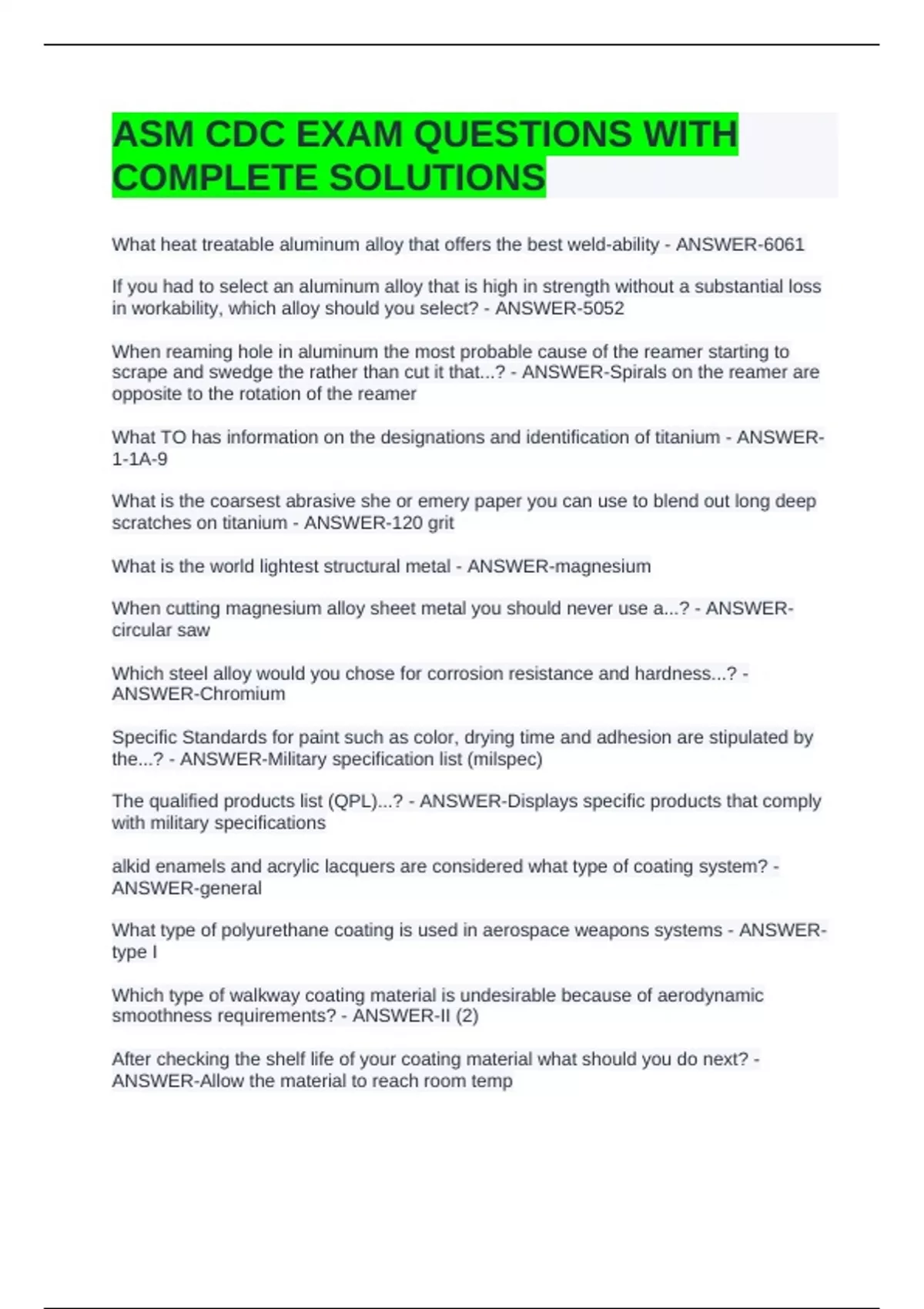 ASM CDC EXAM QUESTIONS WITH