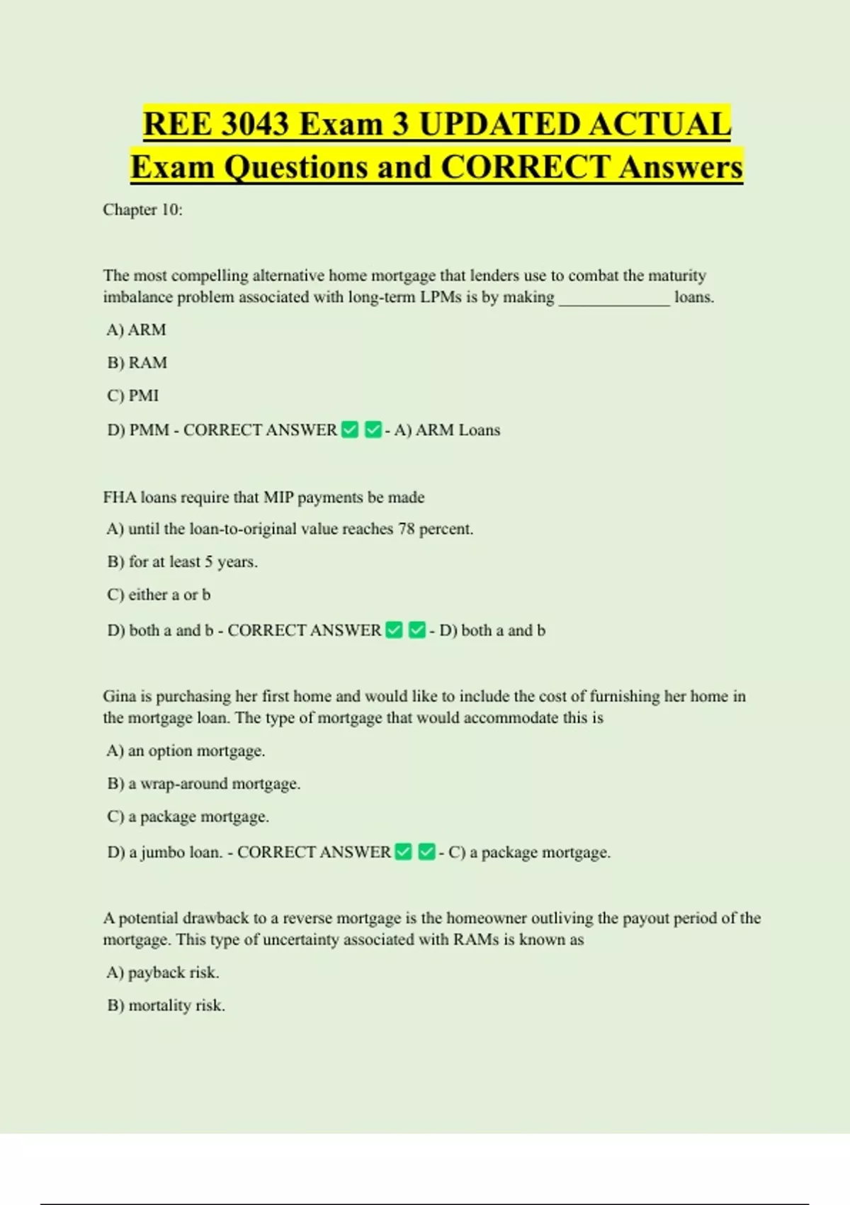 D) PMM - CORRECT ANSWER - A) ARM Loans