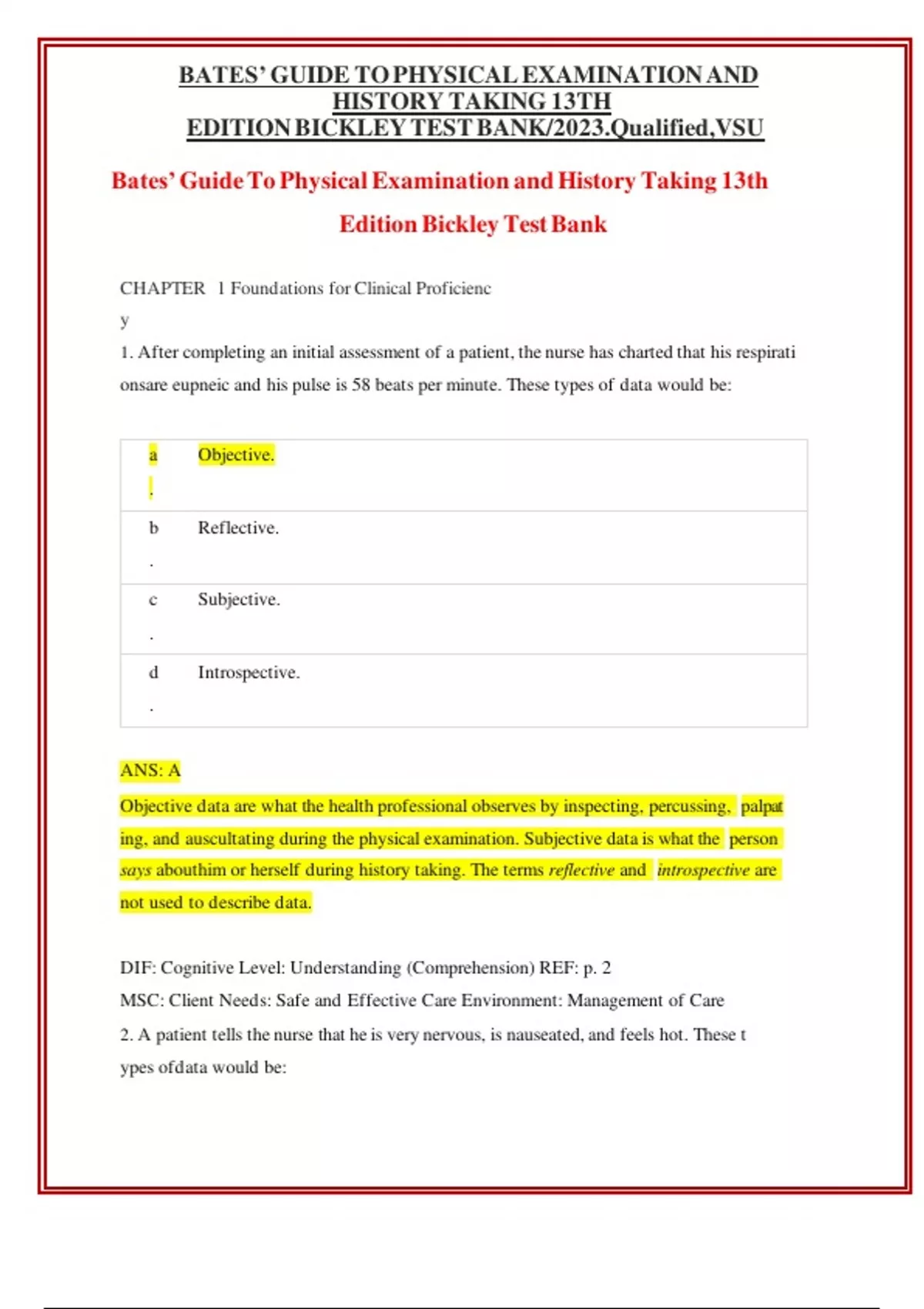 Subjectiven datan aren what nthenpersonn saysn aboutnhimn orn herself nduringn historyntaking.nnObjec