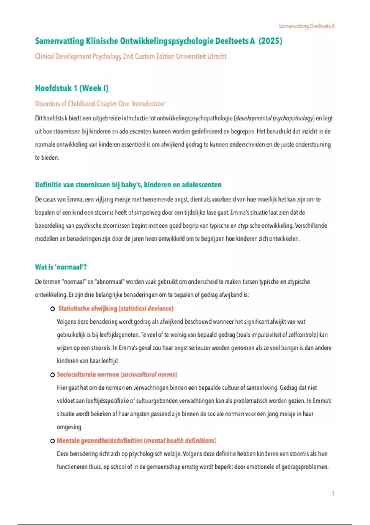 Samenvatting Klinische Ontwikkelingspsychologie Deeltoets A (2025)