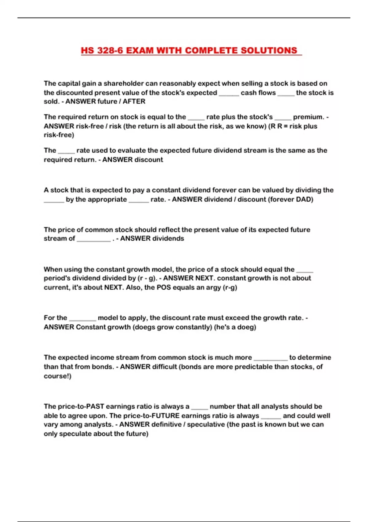 HS 328-6 EXAM WITH COMPLETE SOLUTIONS ...