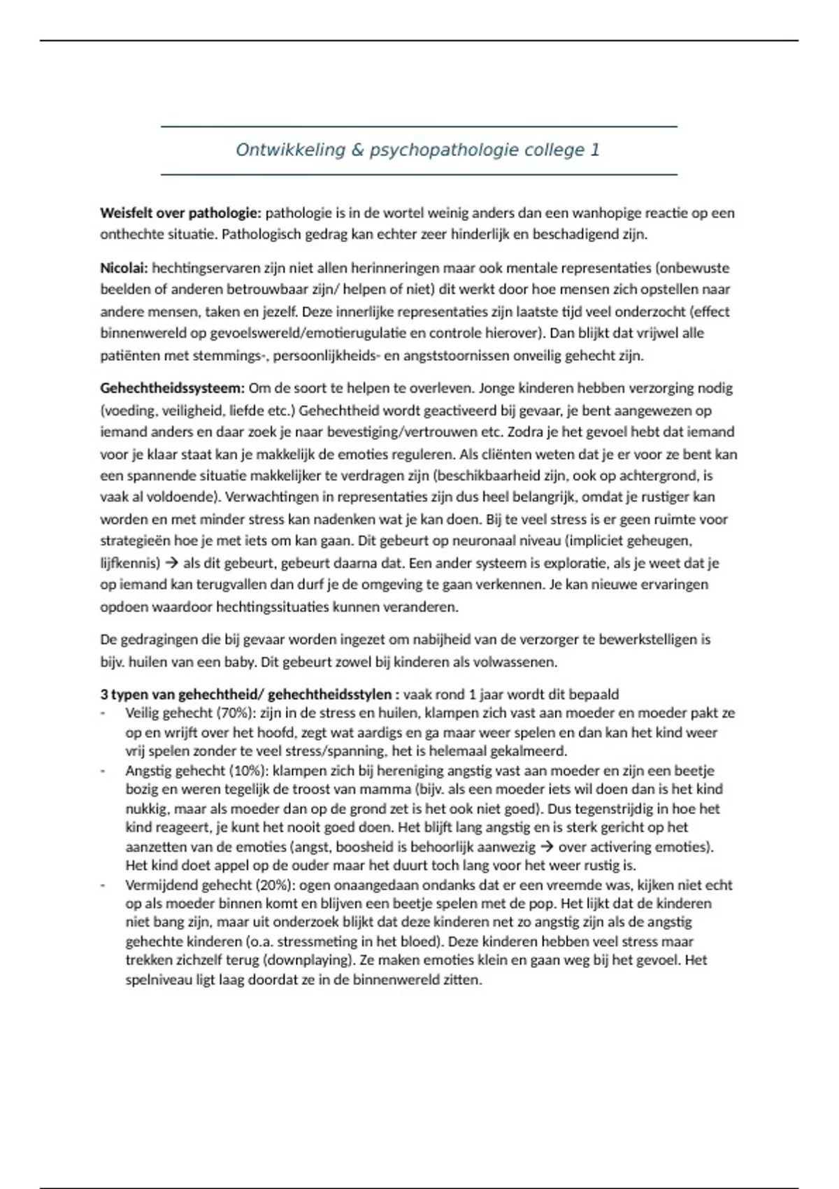 se een stoornis bij onveilige gehechtheid maar je bent er vatbaarder voor. (belangrijk).