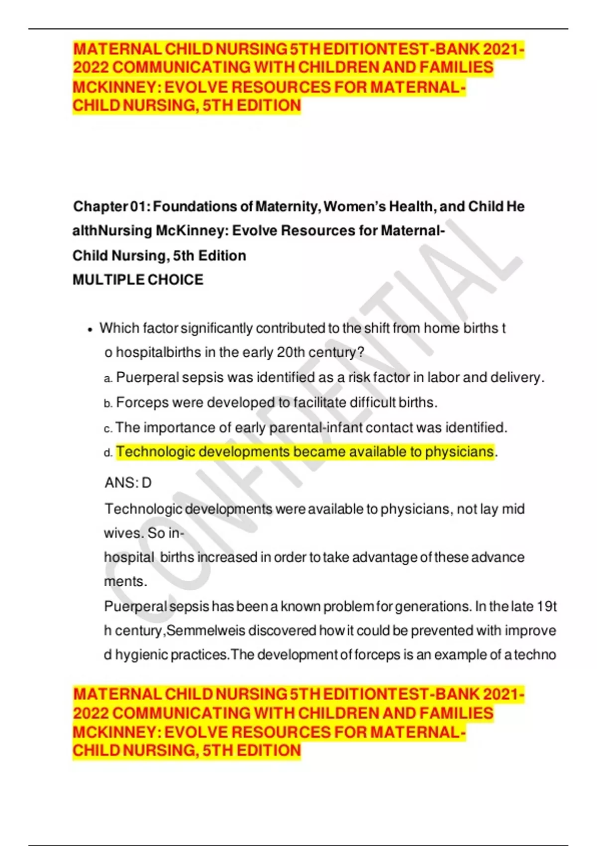 ,MATERNAL CHILD NURSING 5TH EDITIONT EST-BANK 2021- c c c c c c