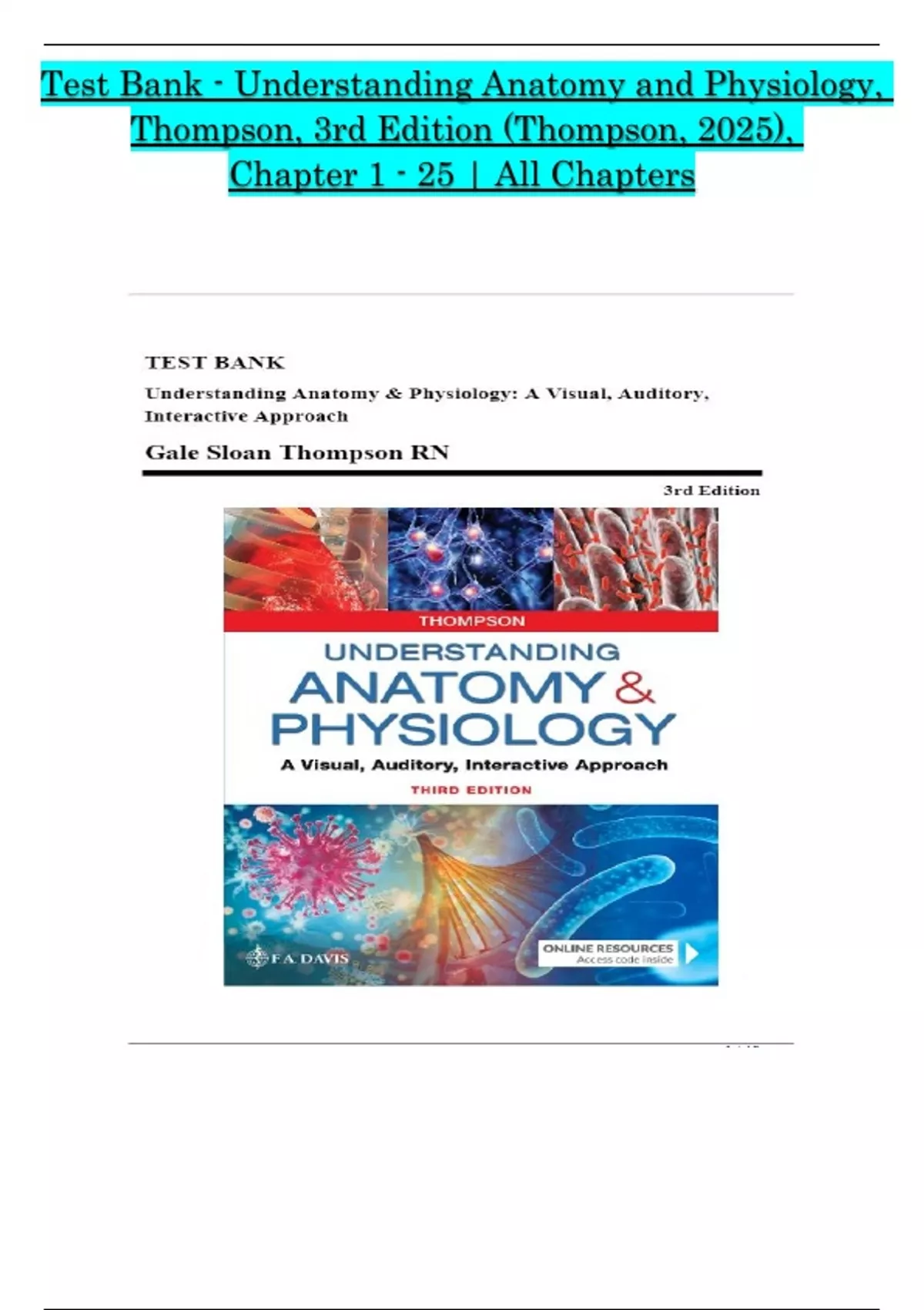 Test Bank - Understanding Anatomy and Physiology,