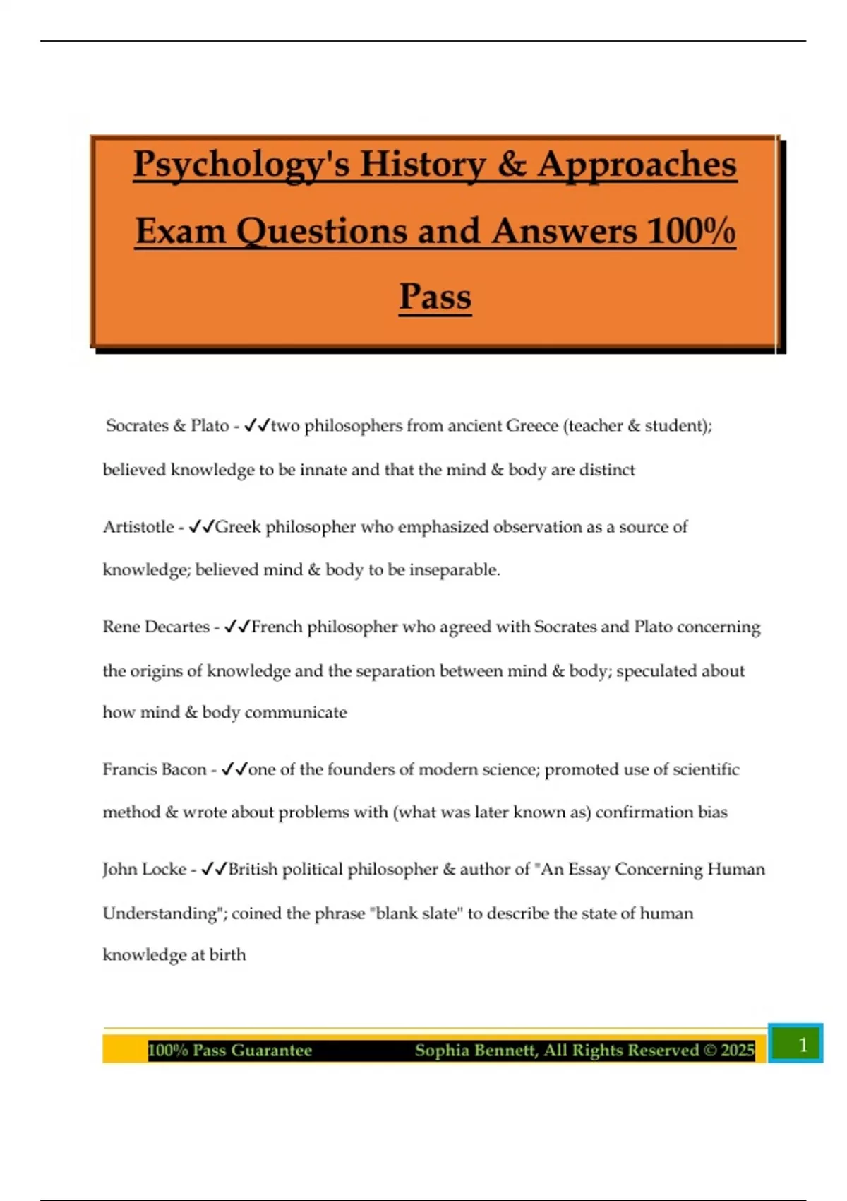 100% Pass Guarantee Sophia Bennett, All Rights Reserved © 2025 1