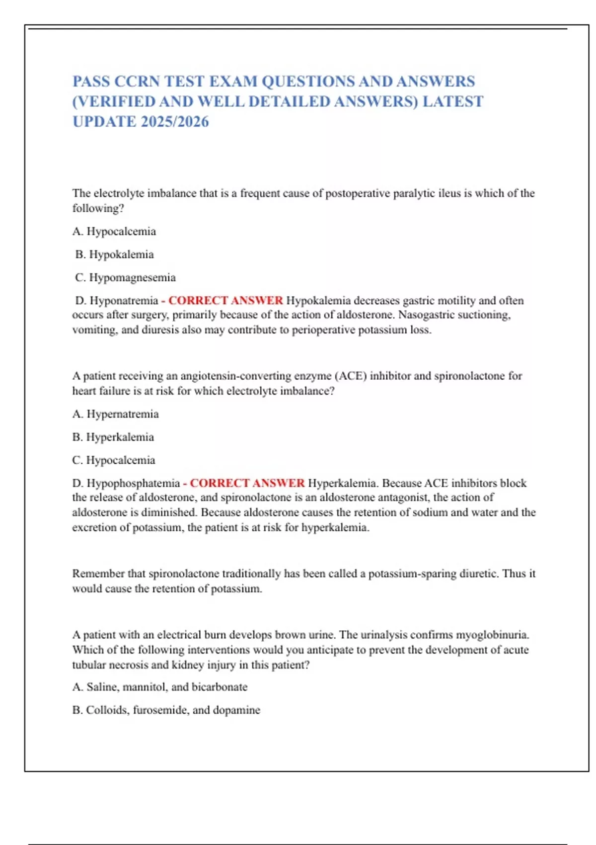 PASS CCRN TEST EXAM QUESTIONS AND ANSWERS