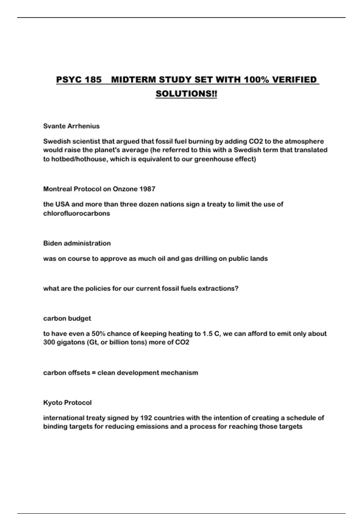 PSYC 185 MIDTERM STUDY SET WITH 100% VERIFIED