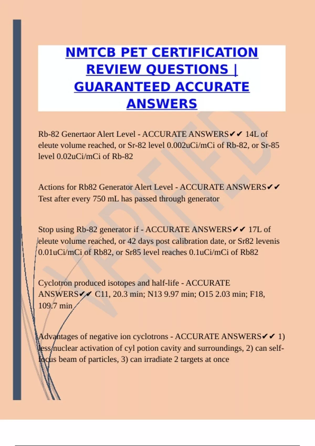 Rb-82 Genertaor Alert Level - ACCURATE ANSWERS✔✔ 14L of