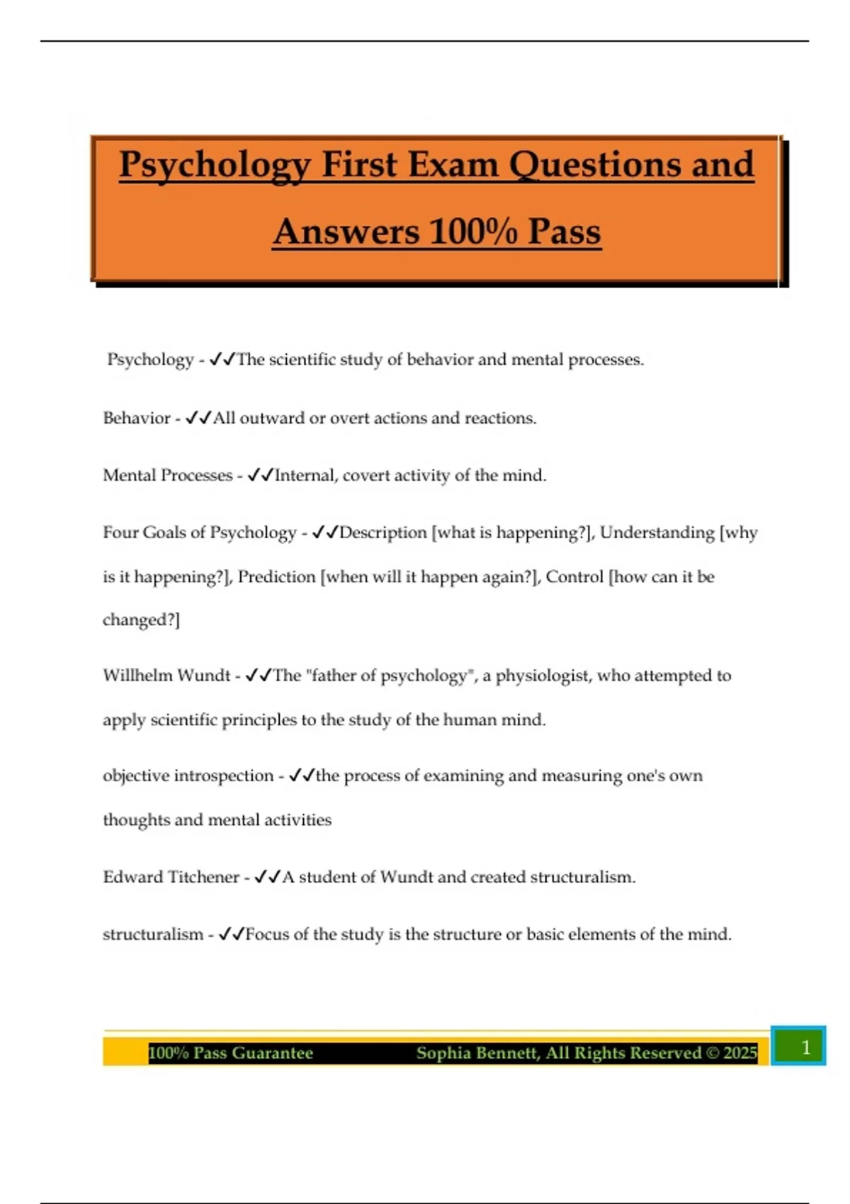 100% Pass Guarantee Sophia Bennett, All Rights Reserved © 2025 1