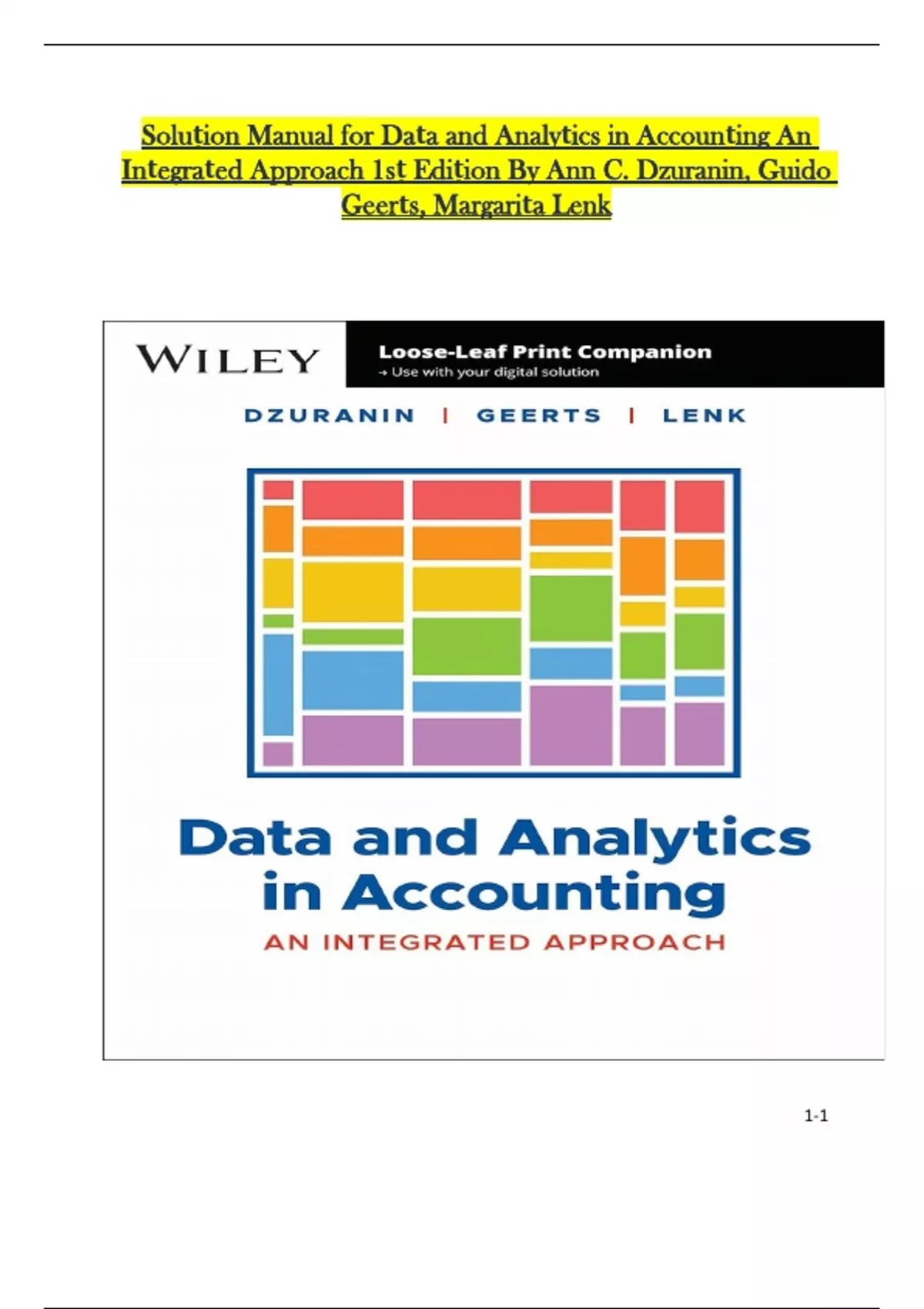 Soluṭion Manual for Data and Analytics in Accounting An