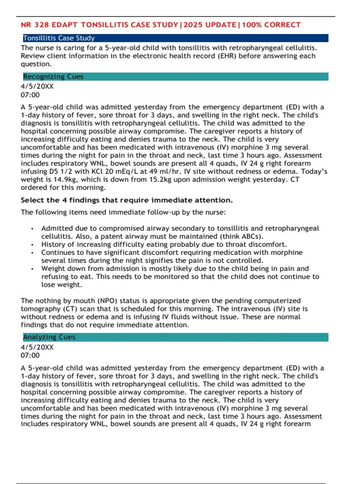NR 328 EDAPT TONSILLITIS CASE STUDY|2025 UPDATE|100% CORRECT