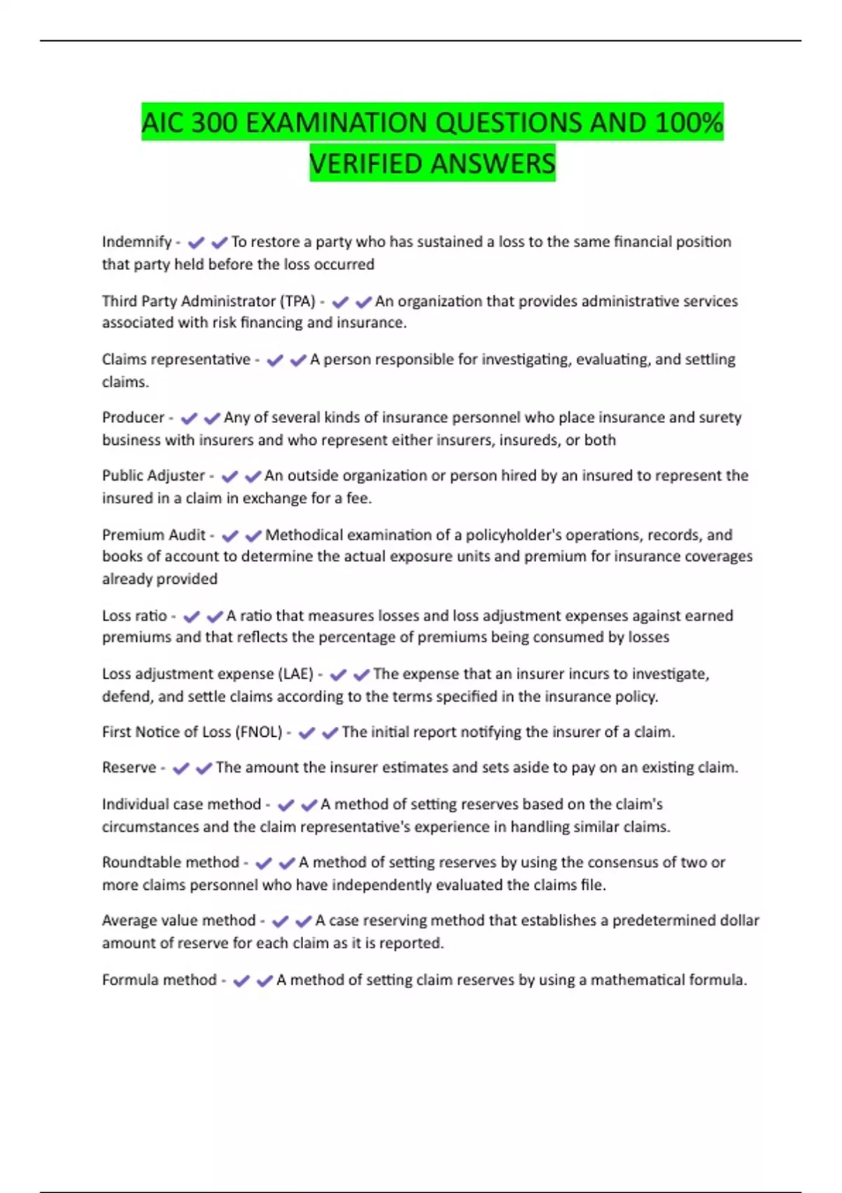 AIC 300 EXAMINATION QUESTIONS AND 100%