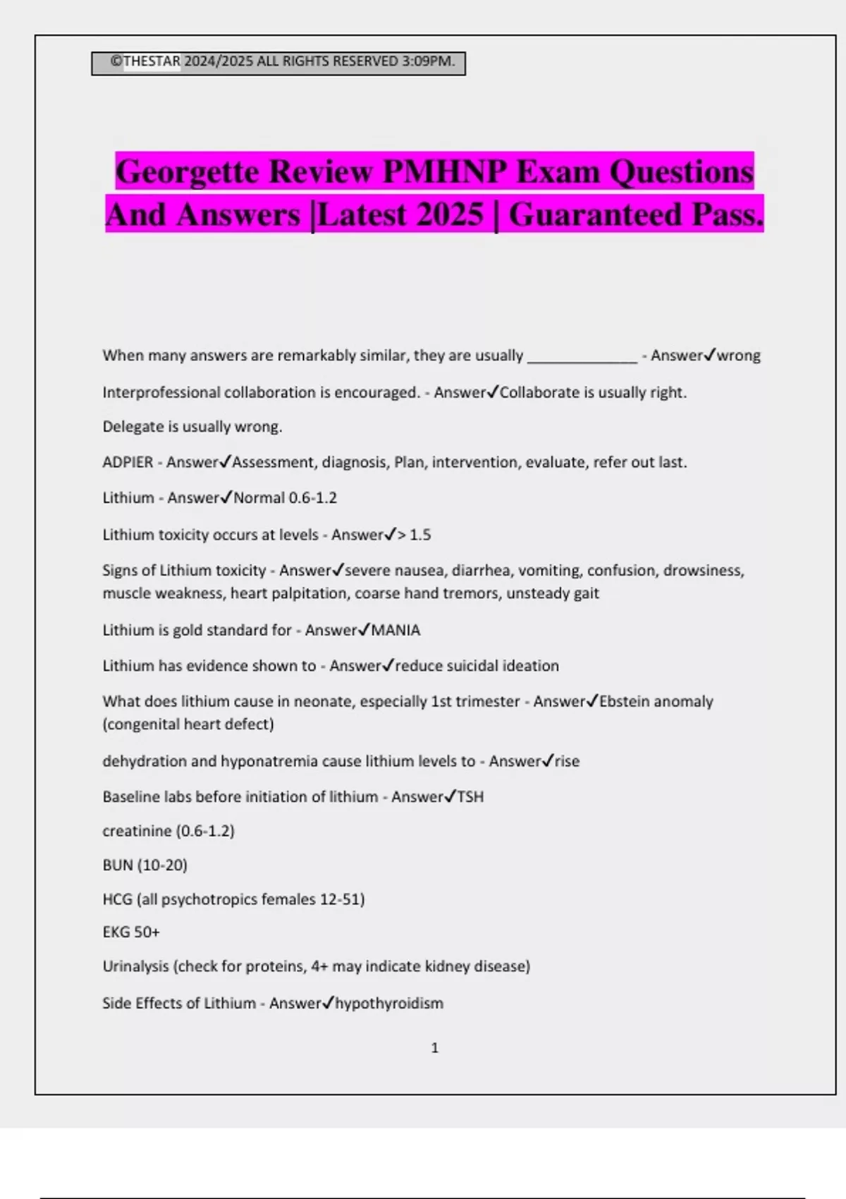 Georgette Review PMHNP Exam Questions