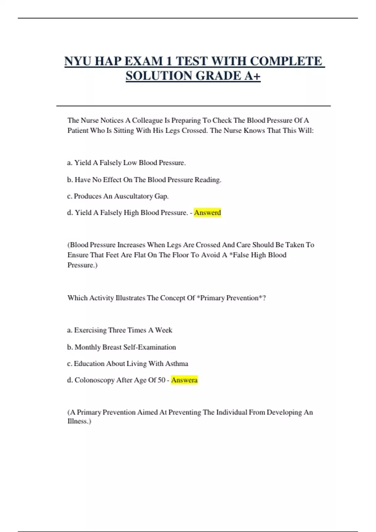 NYU HAP EXAM 1 TEST WITH COMPLETE
