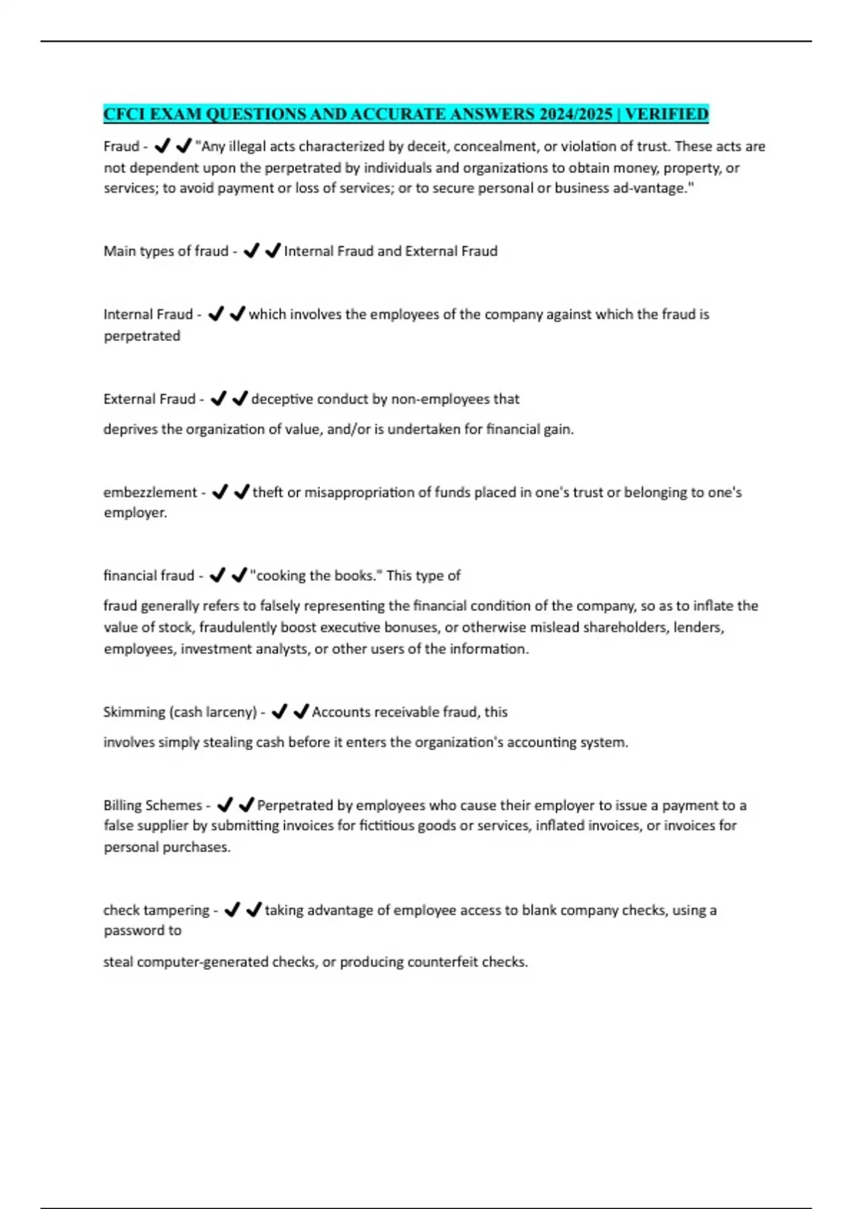 CFCI EXAM QUESTIONS AND ACCURATE ANSWERS 2024/2025 | VERIFIED