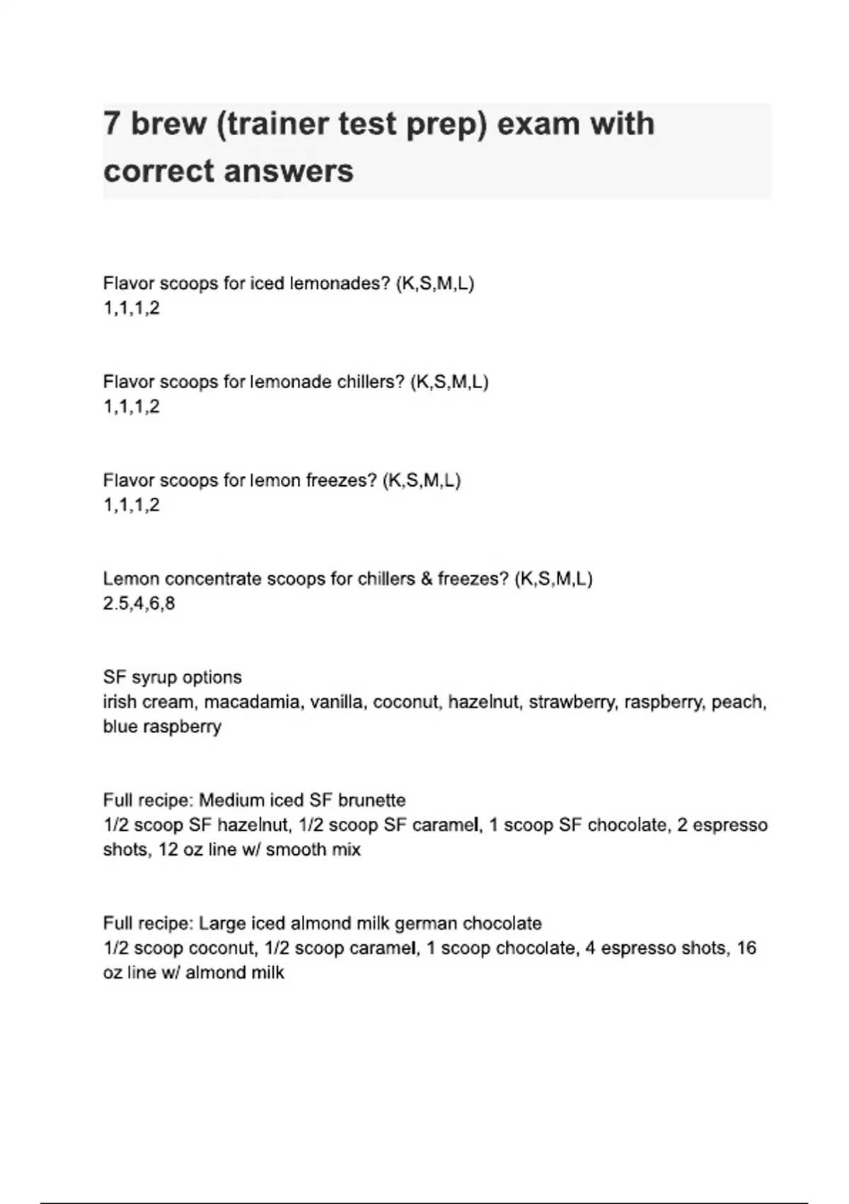 7 brew trainer test prep exam with correct answers