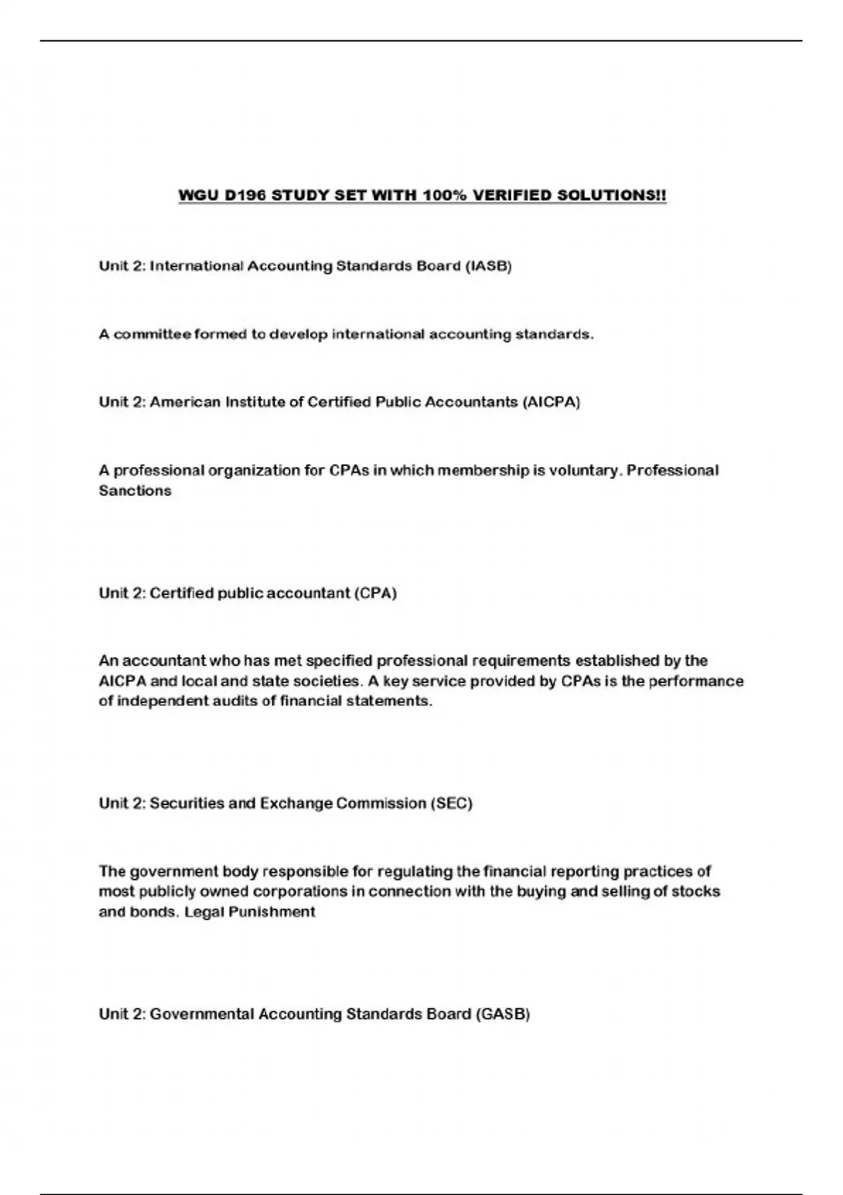 WGU D196 STUDY SET WITH 100% VERIFIED SOLUTIONS!!...