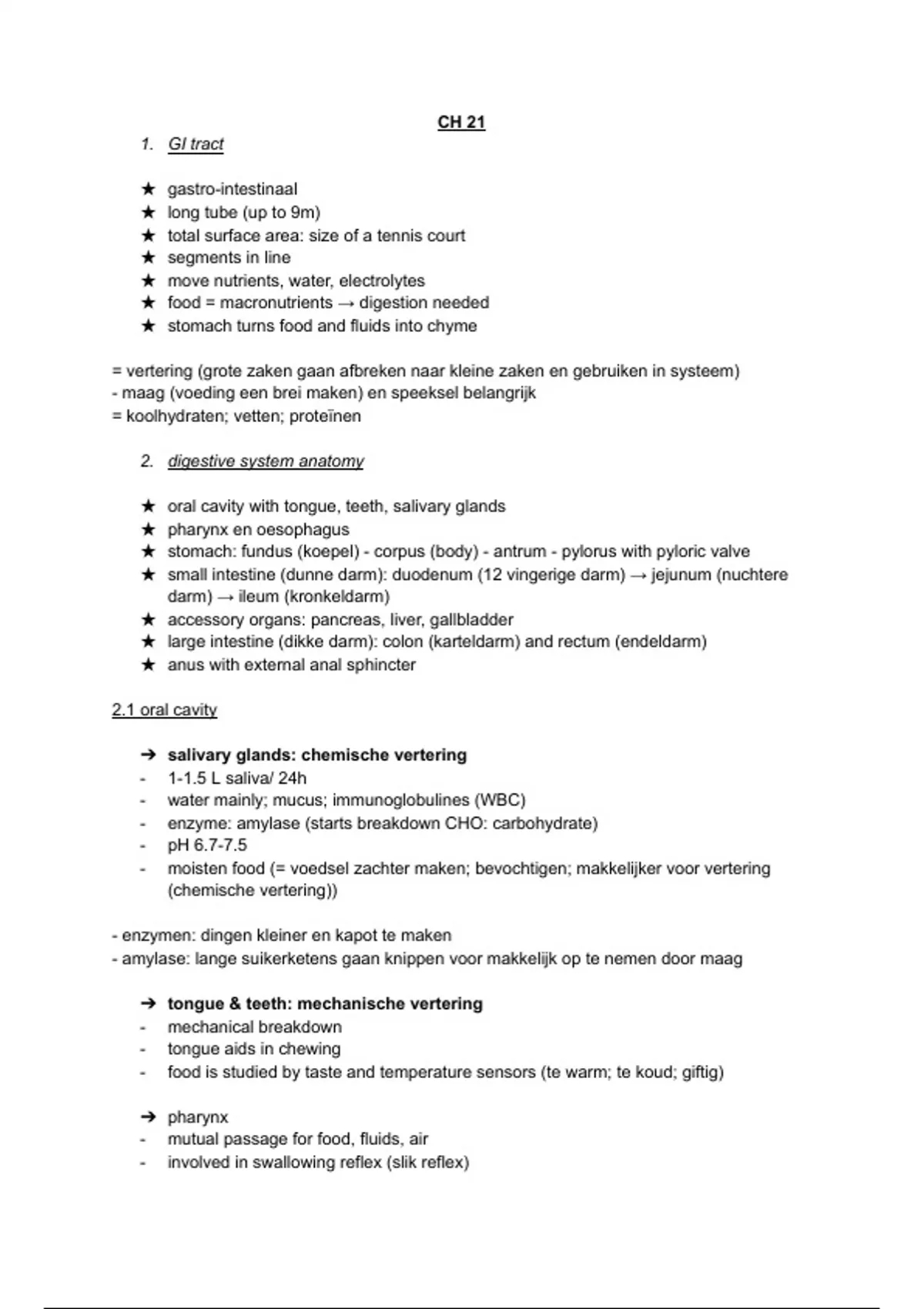 - maag (voeding een brei maken) en speeksel belangrijk