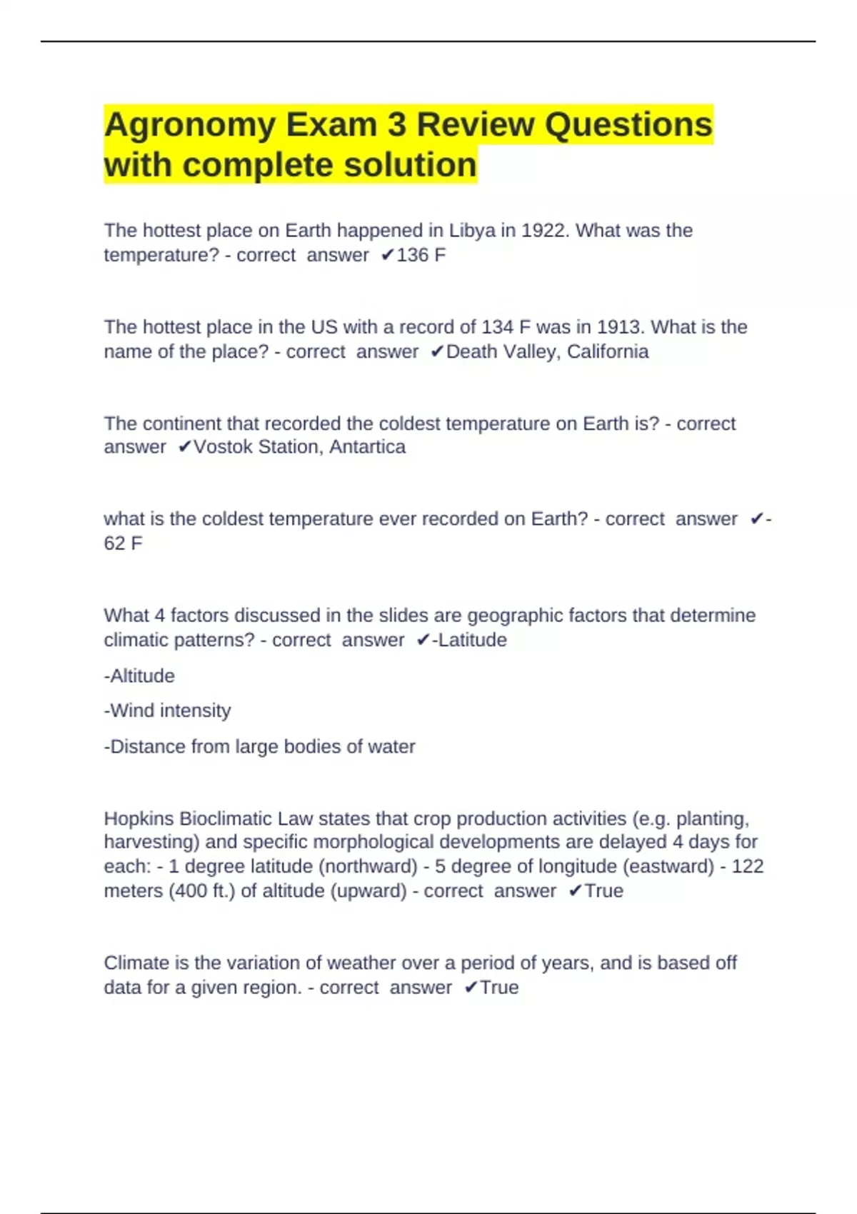 what is the coldest temperature ever recorded on Earth? - correct answer ✔-