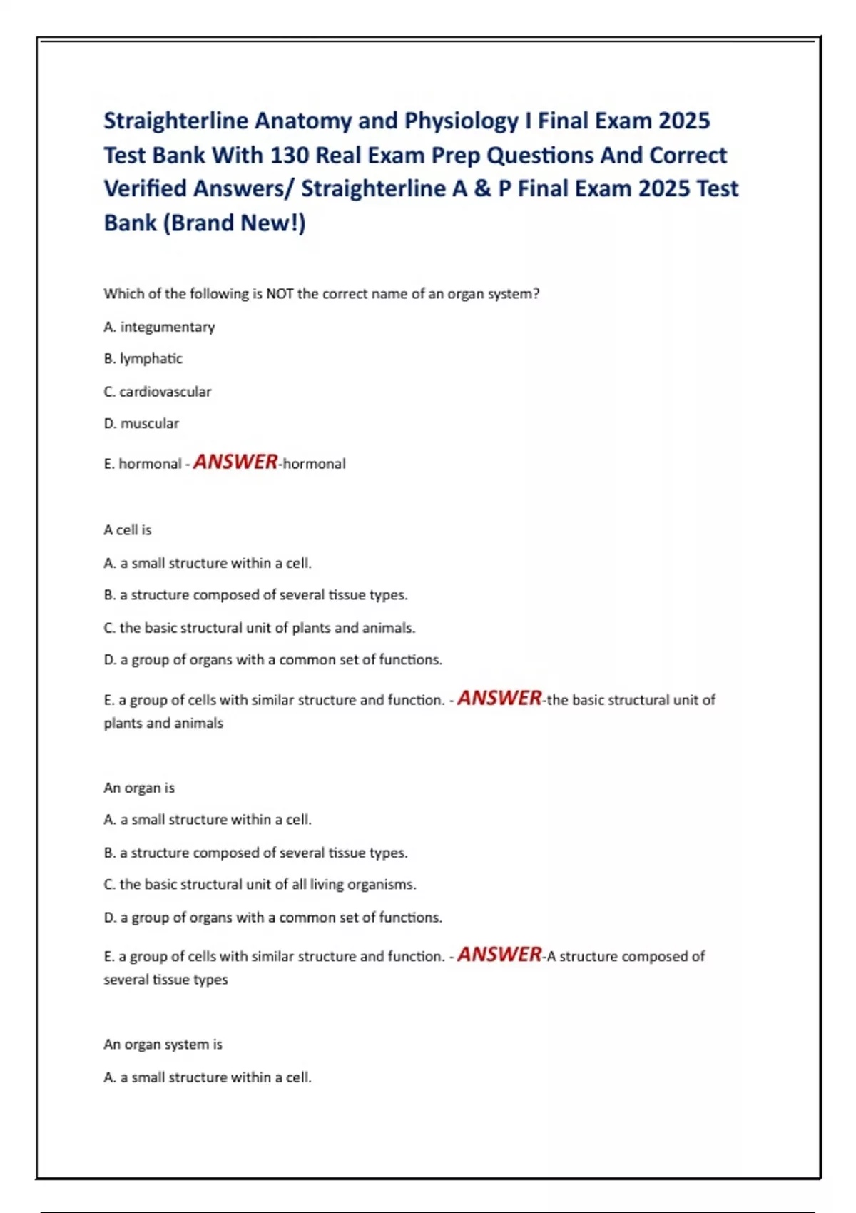 Verified Answers/ Straighterline A & P Final Exam 2025 Test