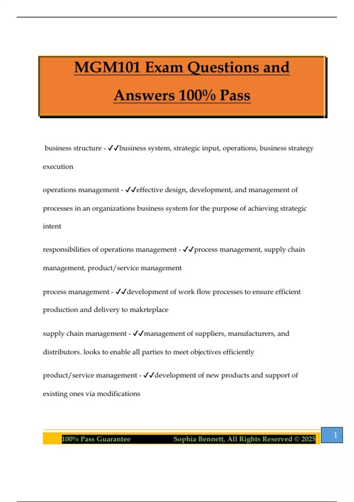 100% Pass Guarantee Sophia Bennett, All Rights Reserved © 2025 1