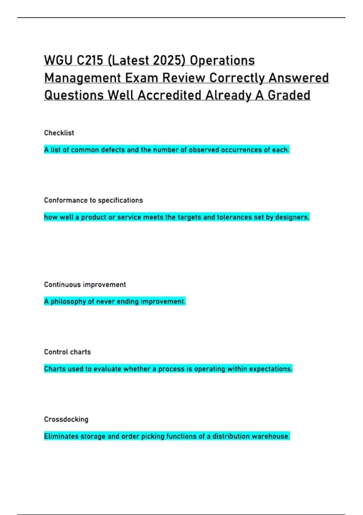 WGU C215 (Latest 2025) Operations Management Exam Review Correctly Answered Questions Well Accredited Already A Graded