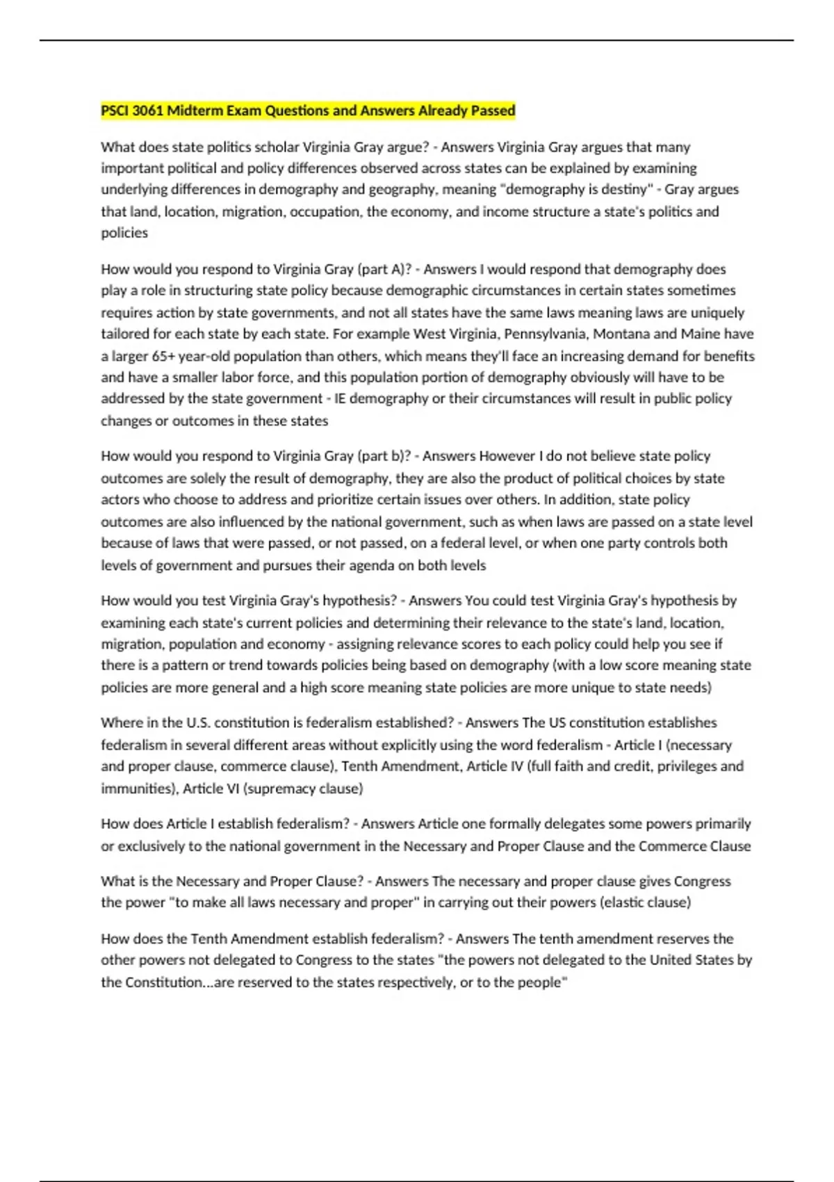 How would you respond to Virginia Gray (part b)? - Answers However I do not believe state policy