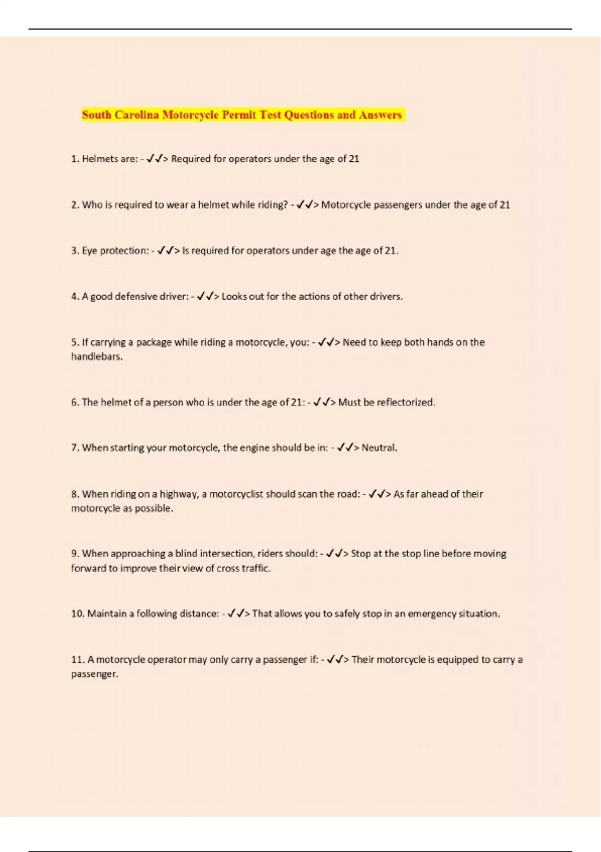 Package deal :::: Motorcycle Permit Tests 2025 with 100% Correct Answers