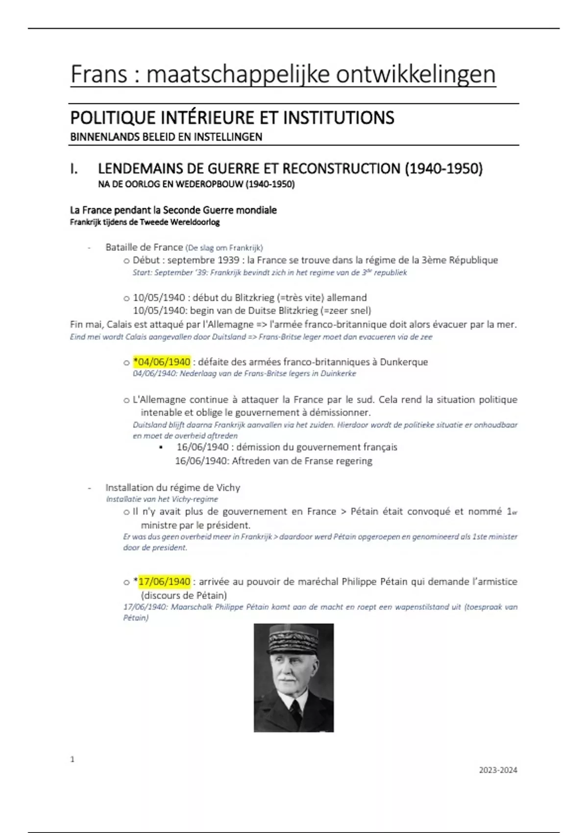 Samenvatting Frans: maatschappelijke ontwikkelingen