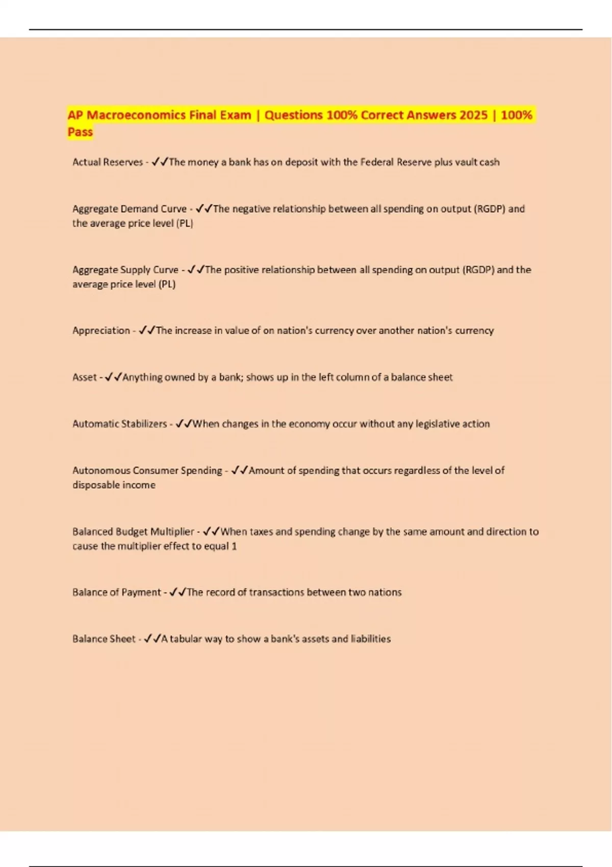 AP Macroeconomics Final Exam | Questions 100% Correct Answers 2025 | 100% Pass