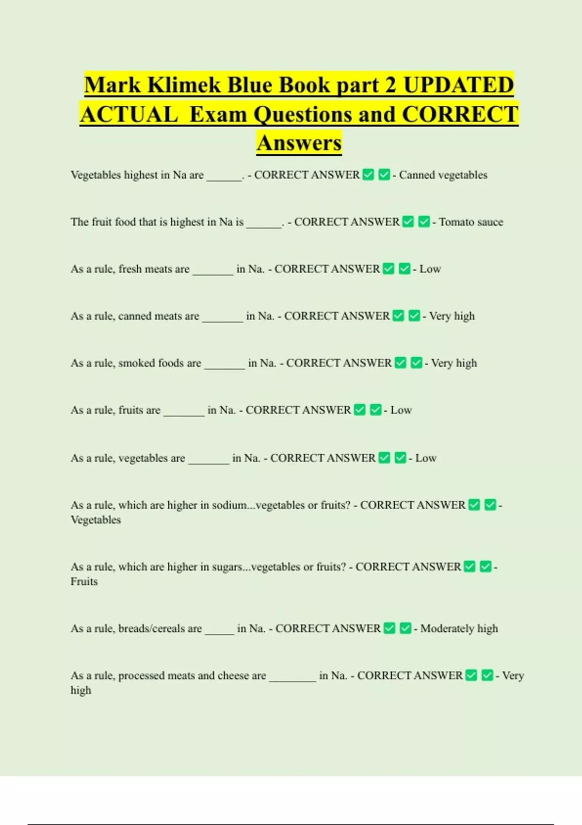 Vegetables highest in Na are ______. - CORRECT ANSWER - Canned vegetables
