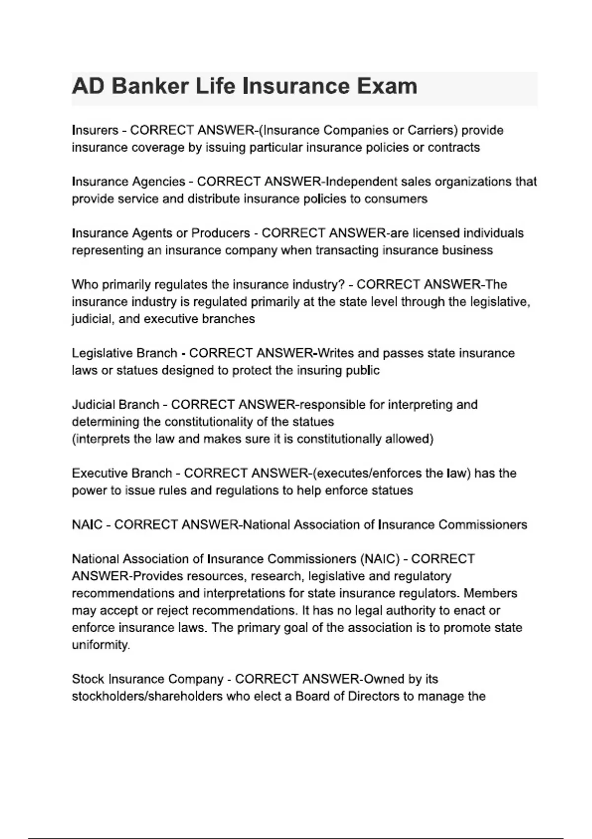 AD Banker Life Insurance Exam