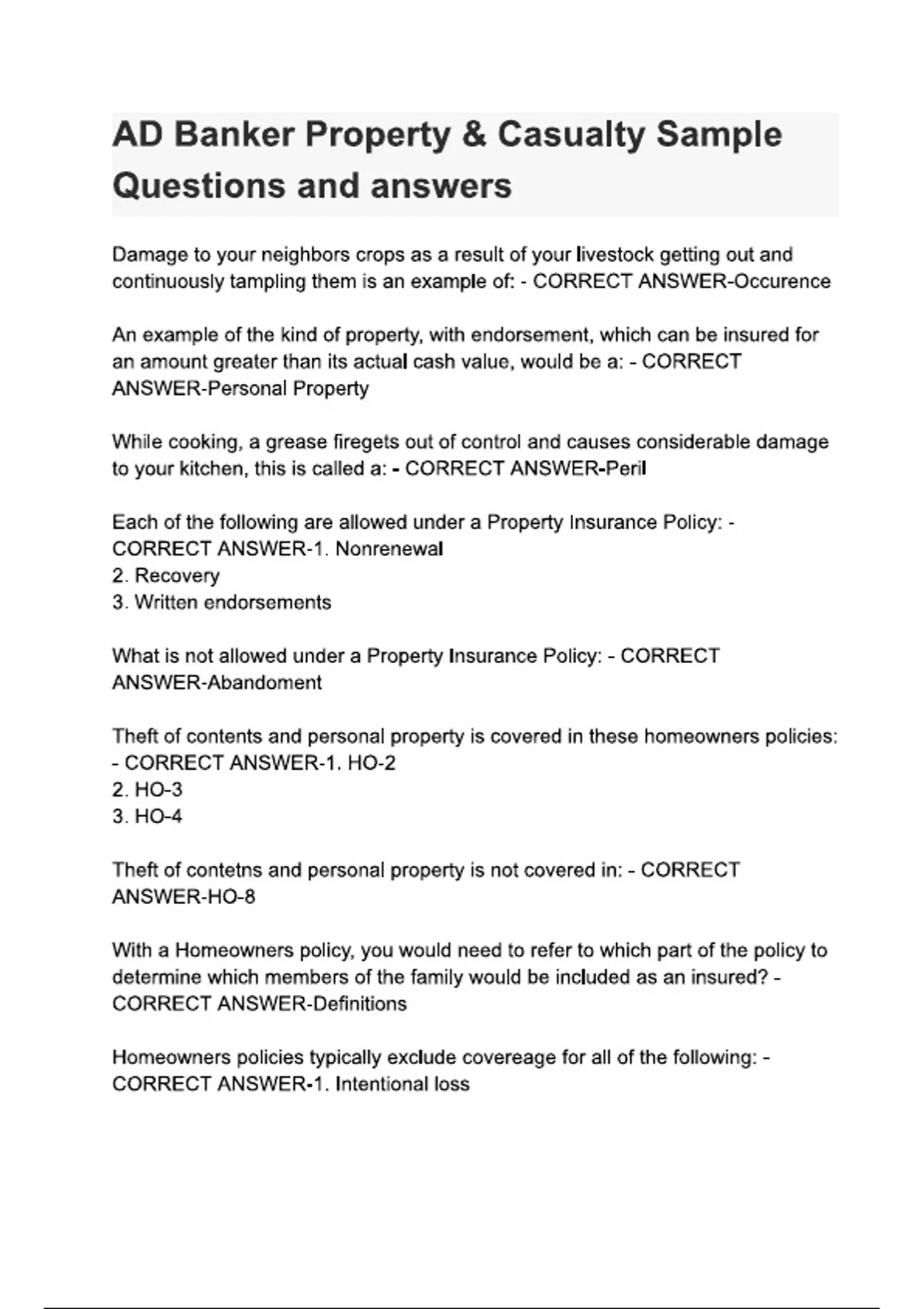 AD Banker Property & Casualty Sample Questions and answers
