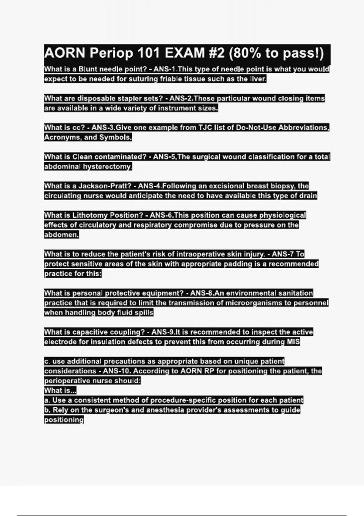 AORN Periop 101 EXAM -2 (80- to pass questions and answers