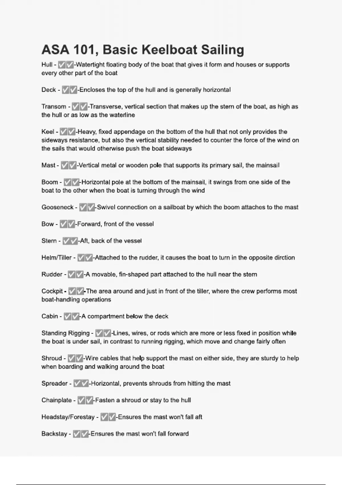 ASA 101, Basic Keelboat Sailing Questions with Explanations of Answers