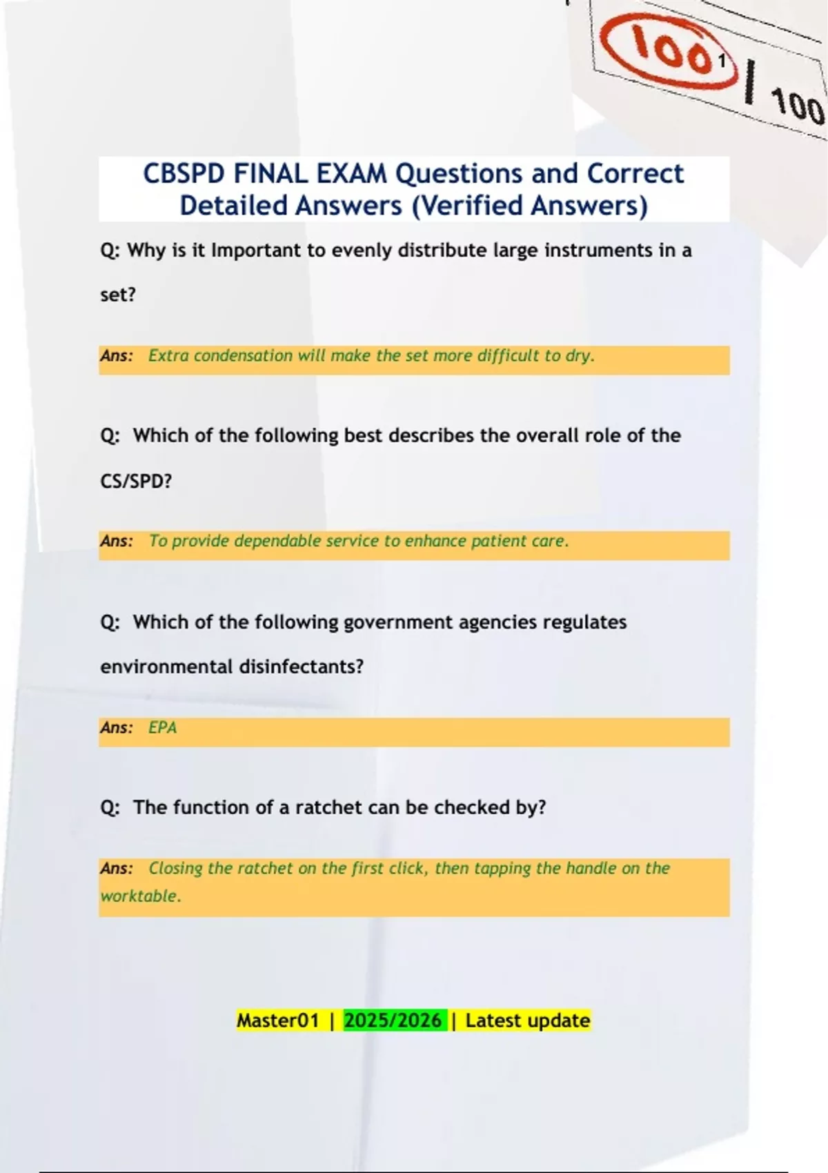 CBSPD FINAL EXAM Questions and Correct