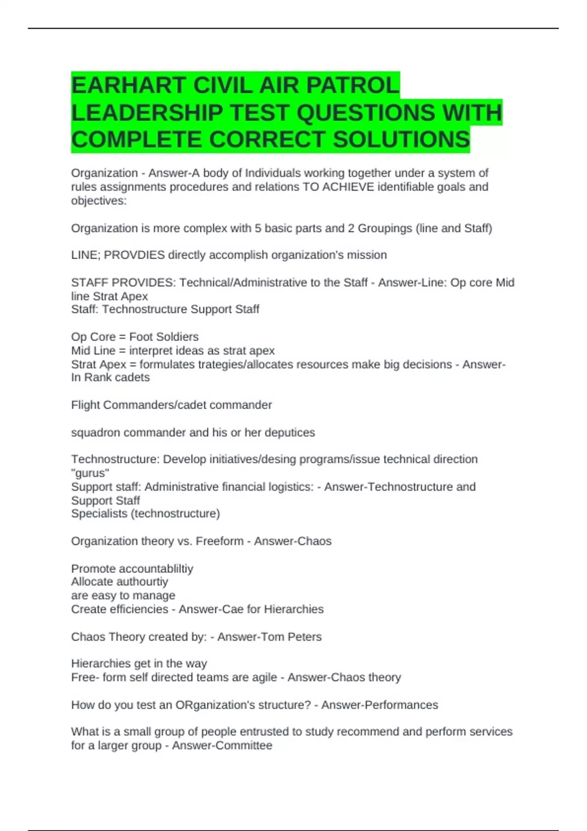 COMPLETE CORRECT SOLUTIONS