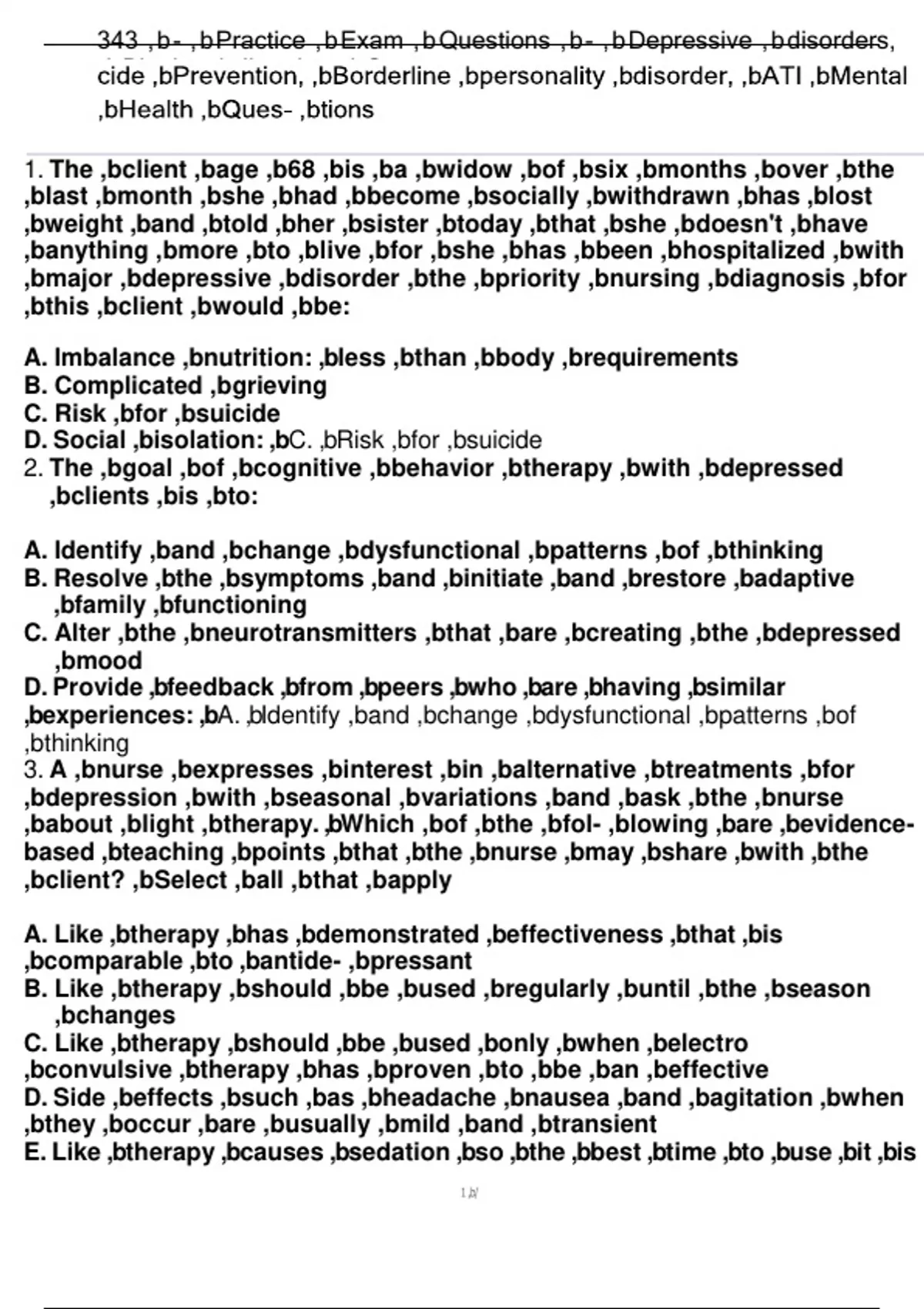, 343 ,b- , bPractice ,bExam , b Questions ,b- ,bDepressive ,bdisorders,
