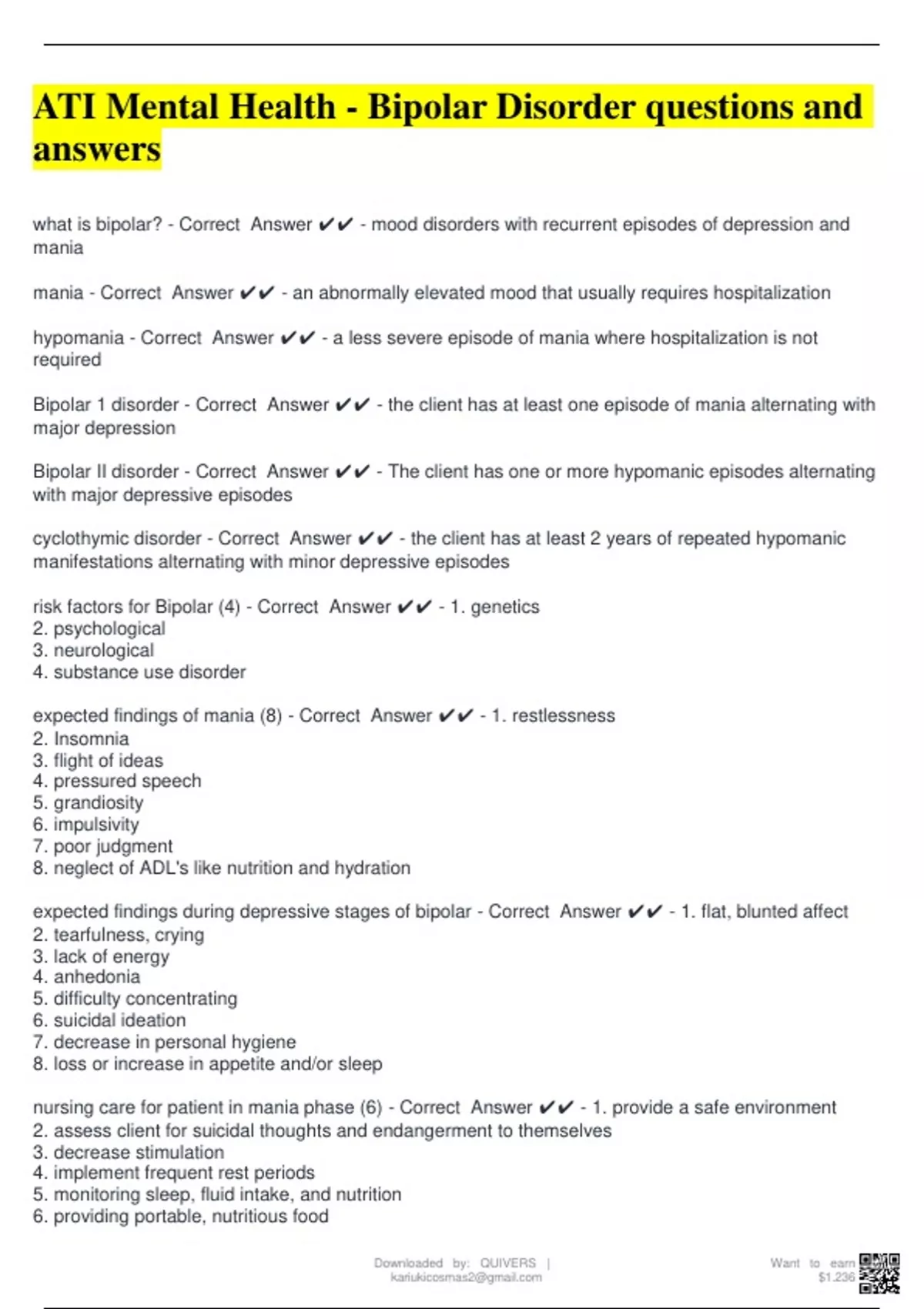 risk factors for Bipolar (4) - Correct Answer ✔✔ - 1. genetics
