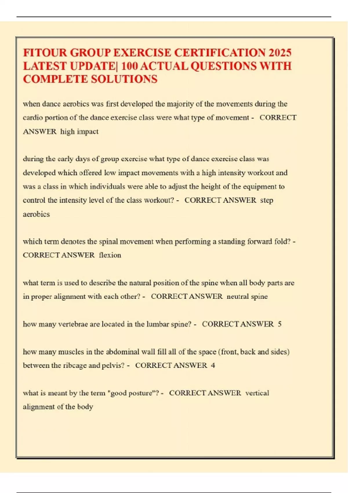 FITOUR GROUP EXERCISE CERTIFICATION 2025 LATEST UPDATE 100 ACTUAL QUESTIONS AND ANSWERS