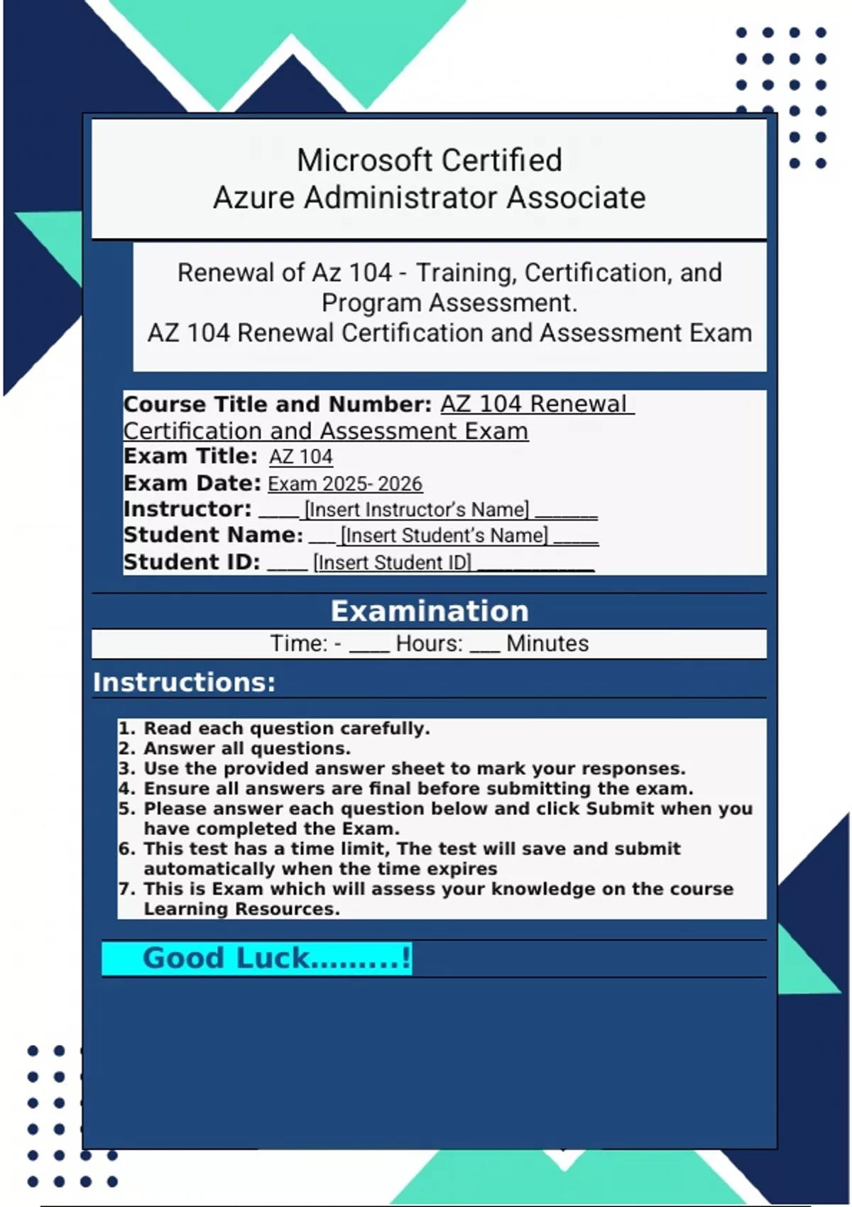Exam Title: AZ 104