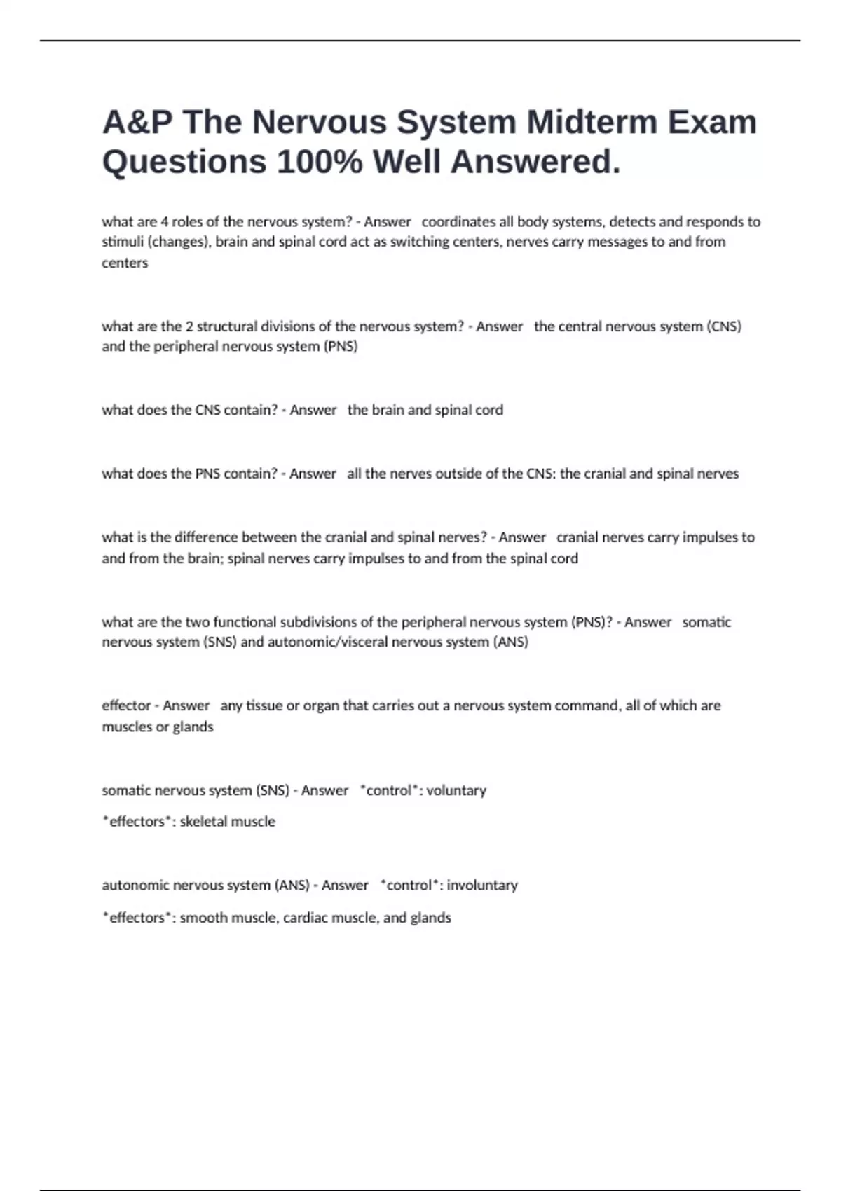autonomic nervous system (ANS) - Answer *control*: involuntary