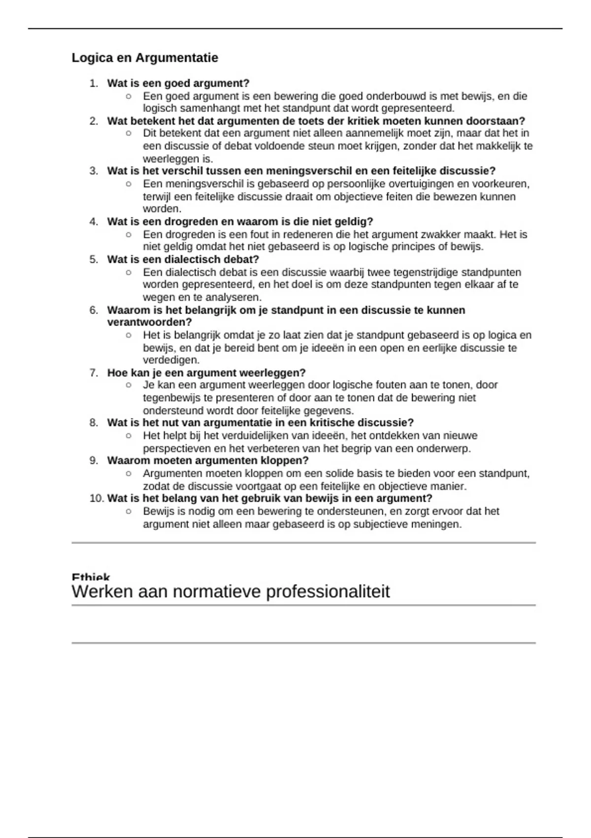 ○ Het is belangrijk omdat je zo laat zien dat je standpunt gebaseerd is op logica en