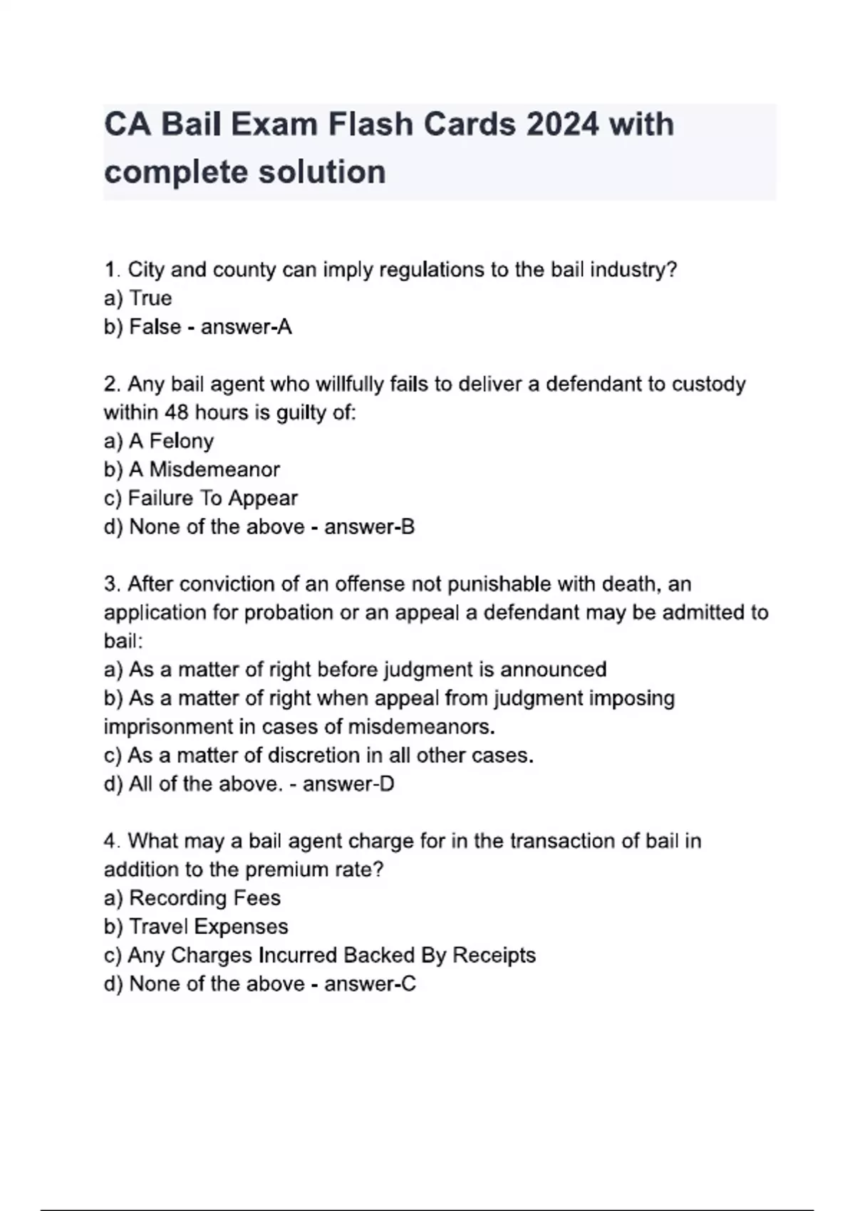 CA Bail Exam Flash Cards 2024 with complete solution questions and answers
