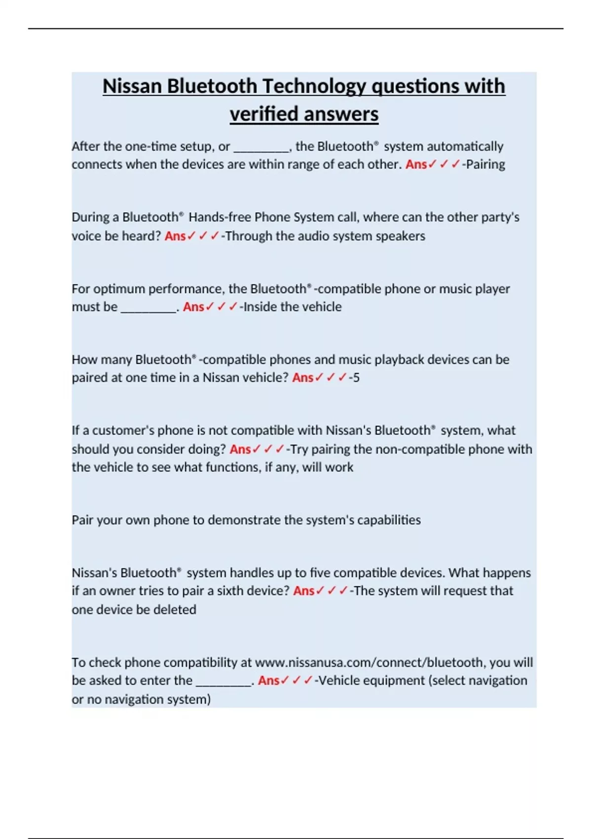 paired at one time in a Nissan vehicle? Ans✓✓✓-5