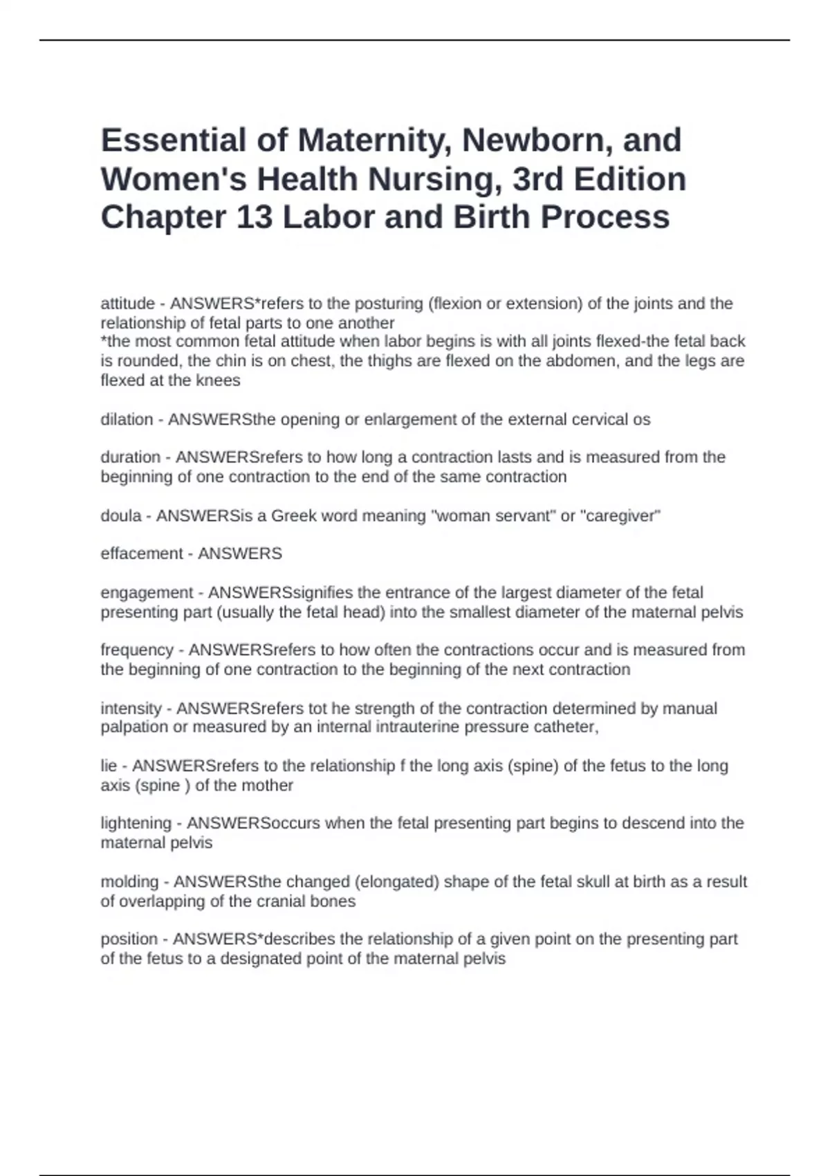 presentation - ANSWERS*refers to the body part of the fetus that enters the pelvic inlet